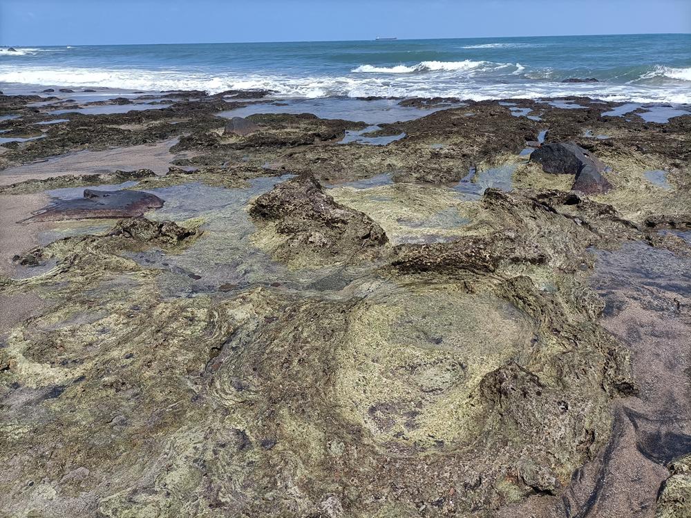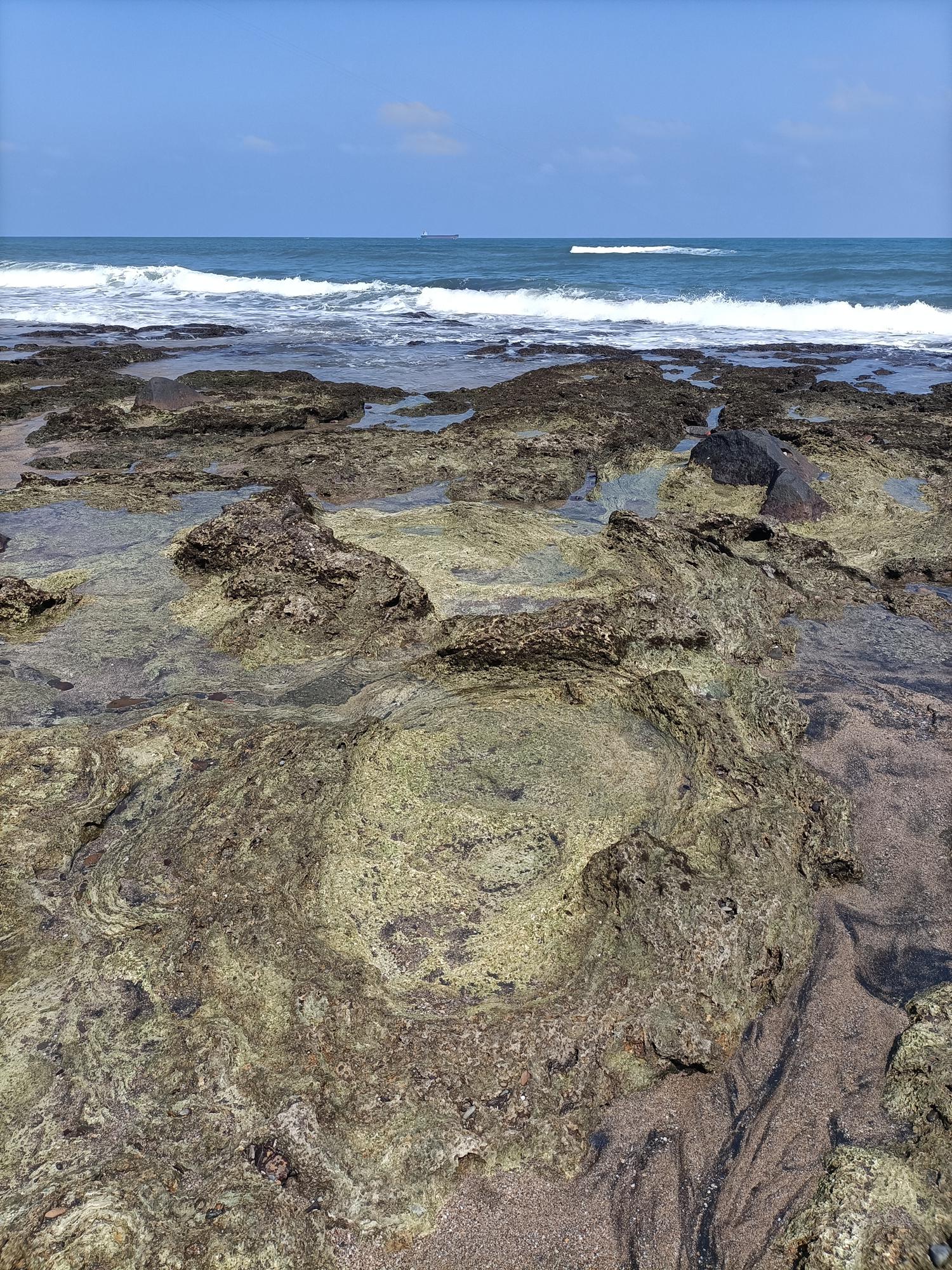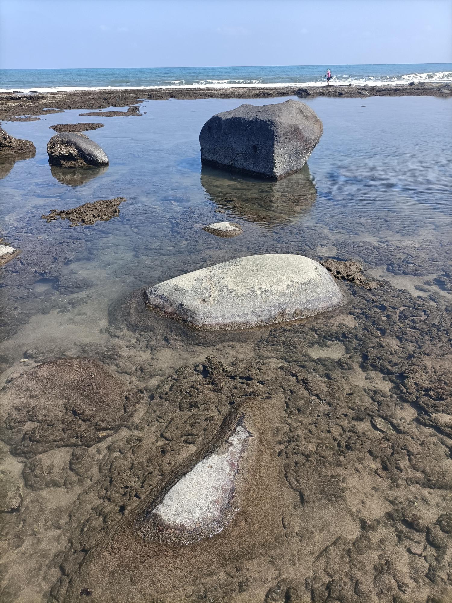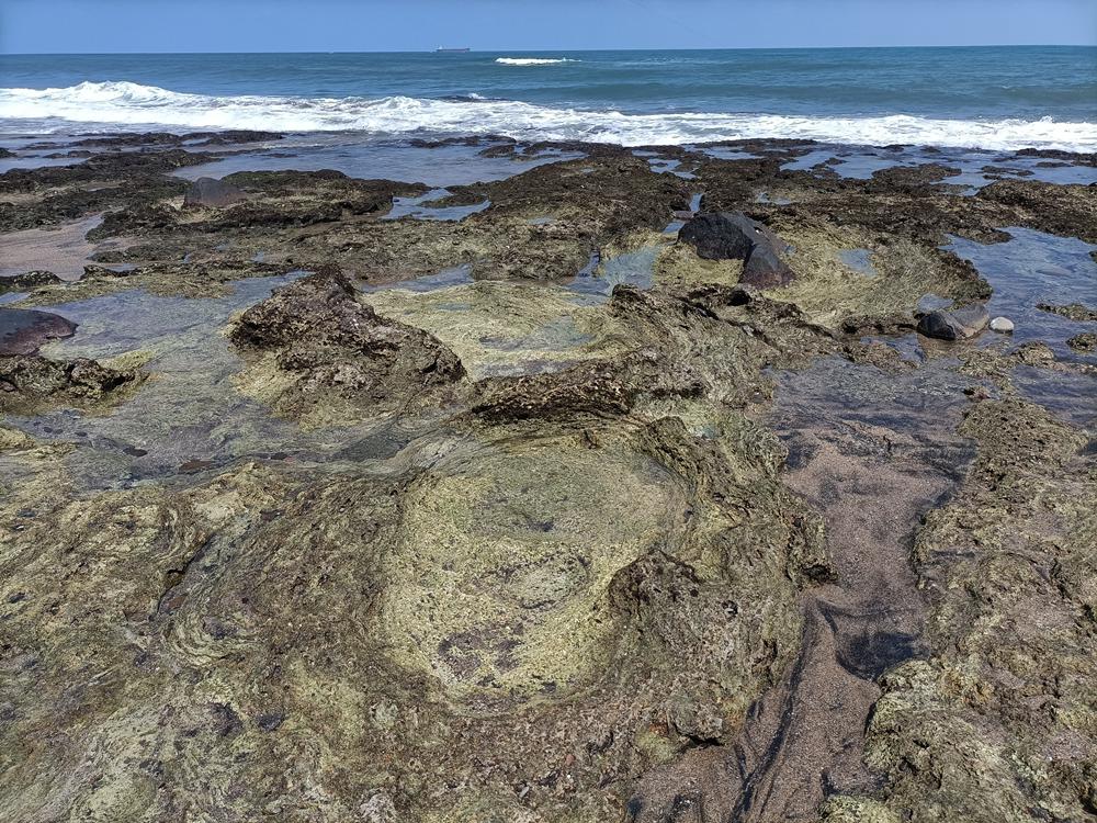 麟山鼻岬角東側海灣沙灘,常夾雜著由安山岩風化後,