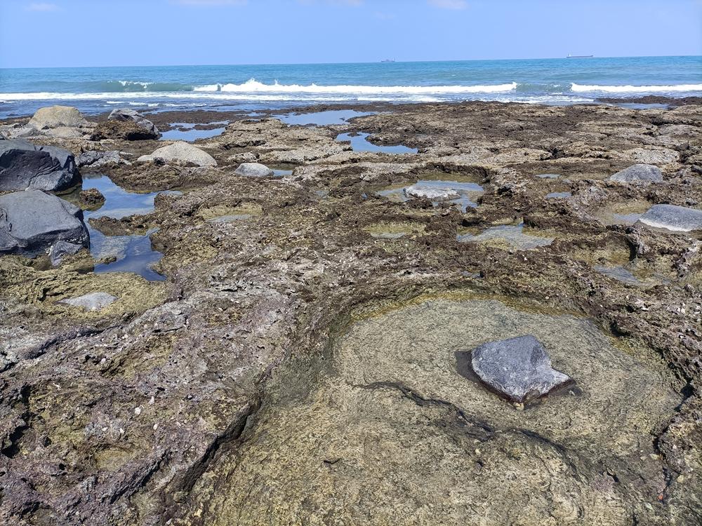 麟山鼻上的安山岩熔岩長年受風沙的長年磨刮,