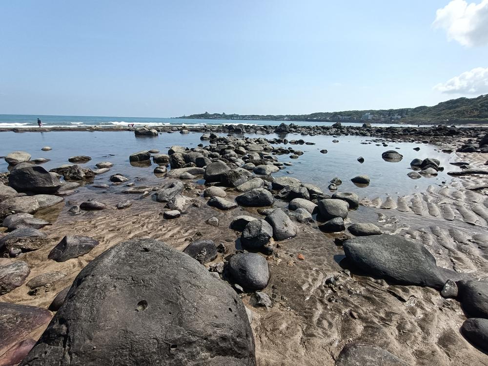 位下員坑海岸,是由富貴角及鱗山鼻合抱而成的