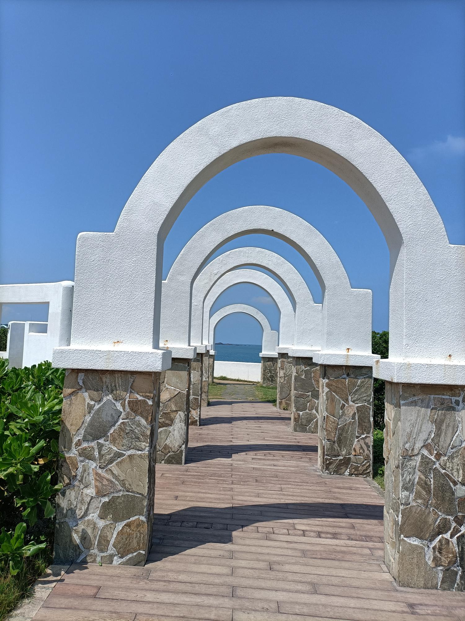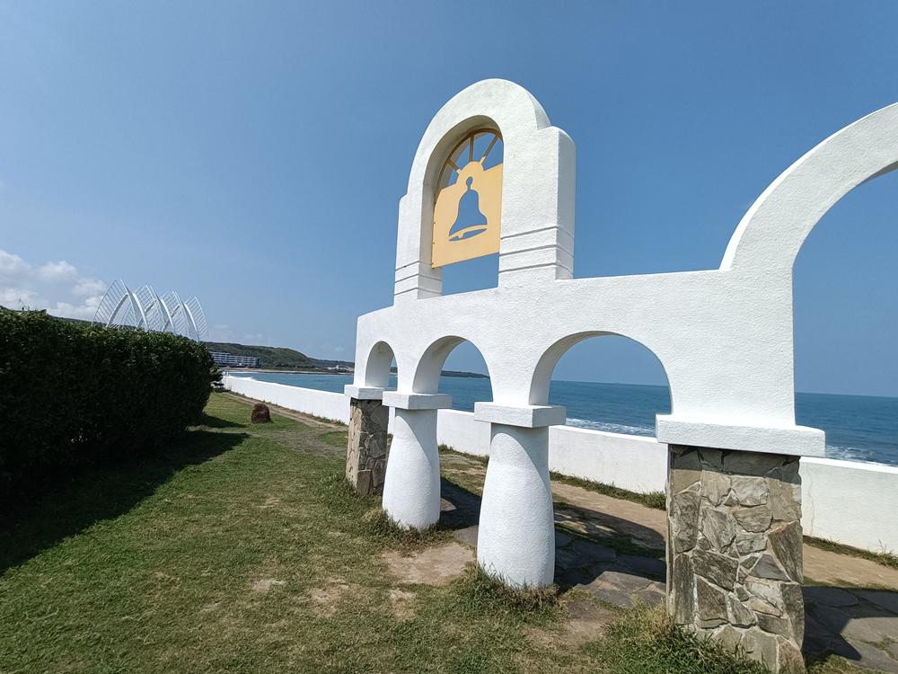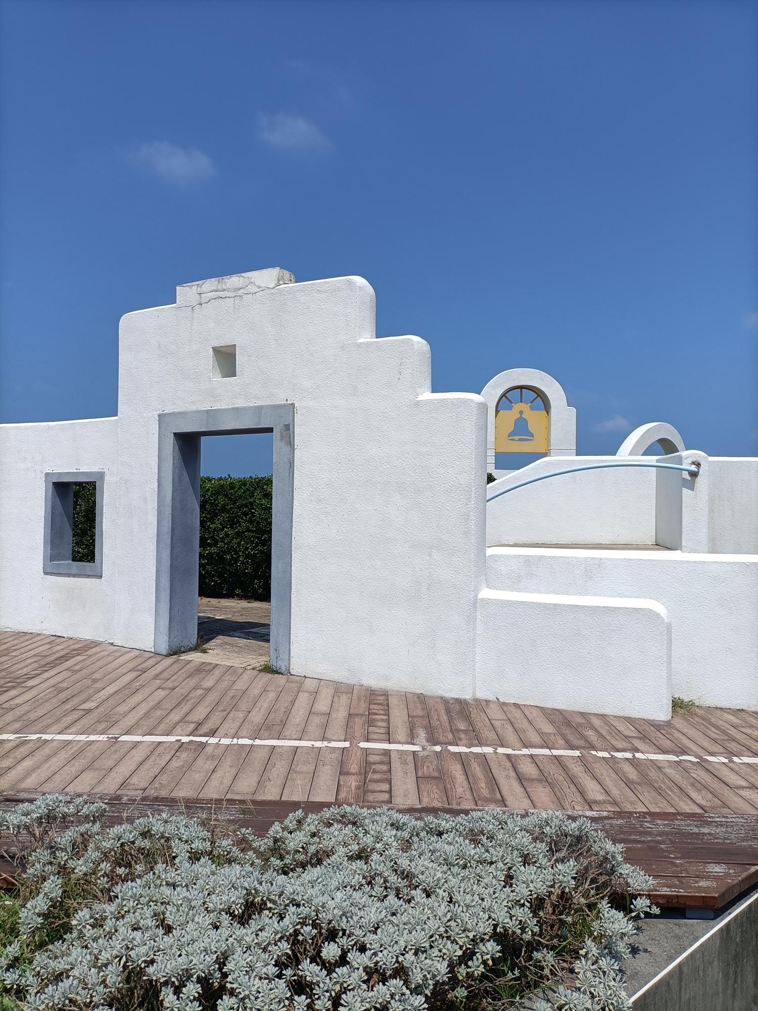 蔚藍的北海岸與白色色調的建築,加上潔白無瑕的鐘樓迴廊,