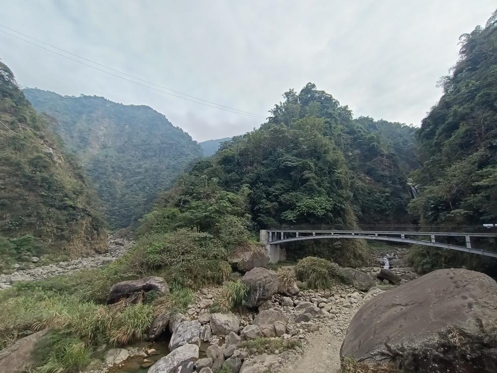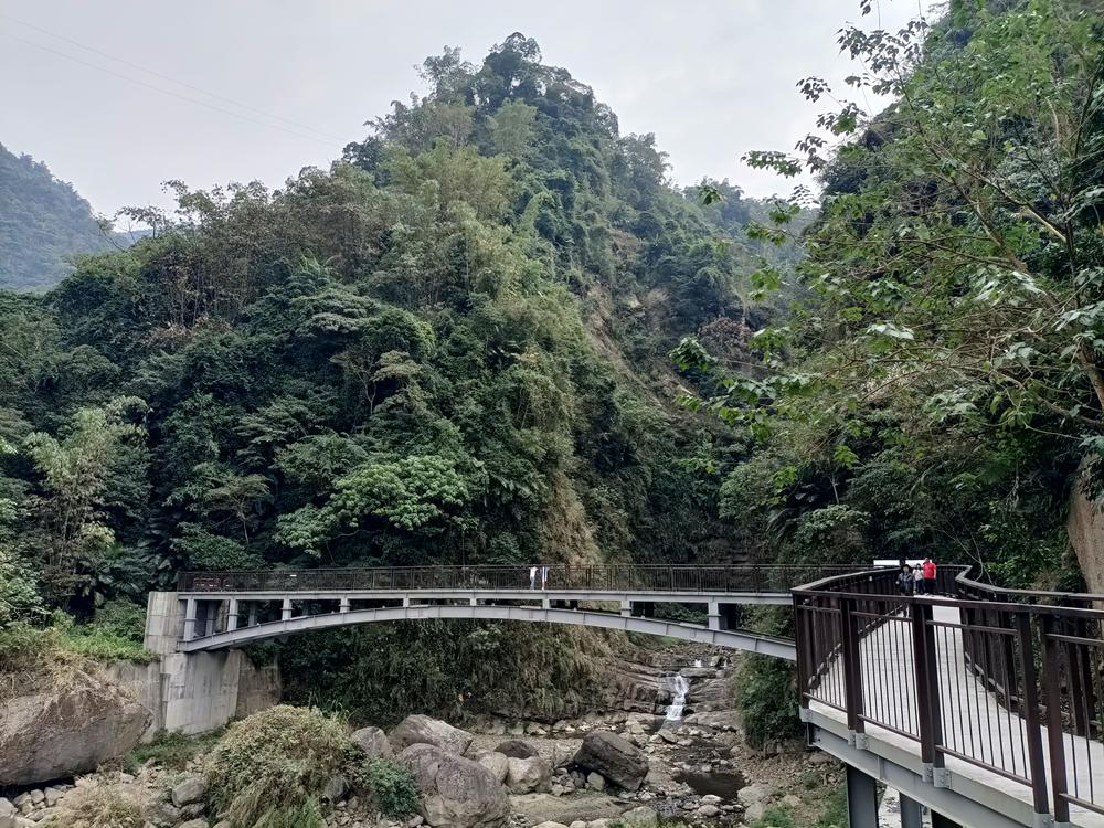 從吊橋處再走至瀑布區約500公尺,會先經至觀景平台,