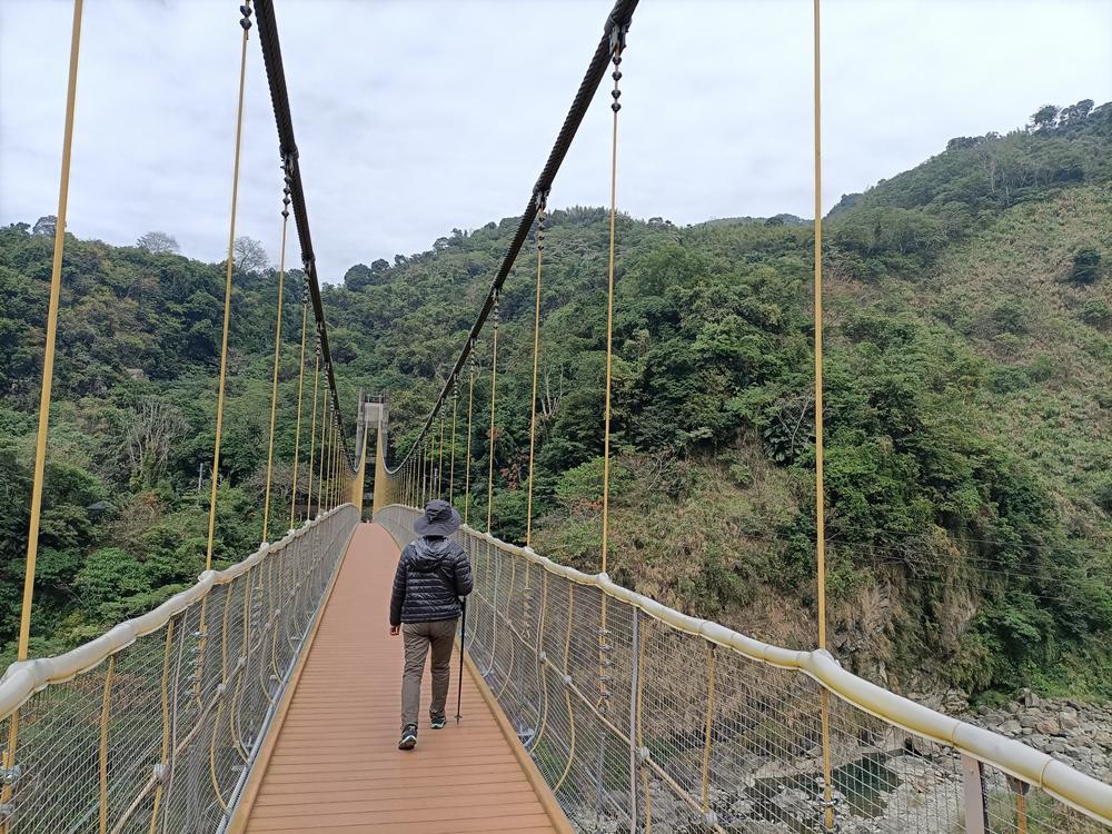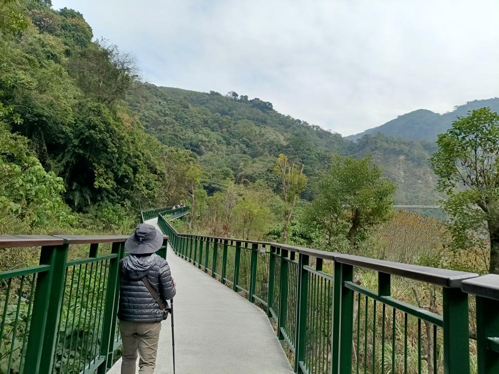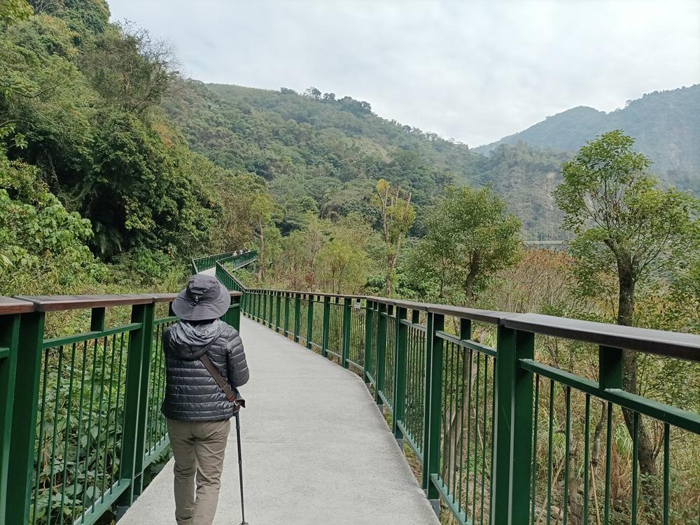 沿著無障礙高架步道走過瑞龍吊橋,一座高架觀景平台正前方能