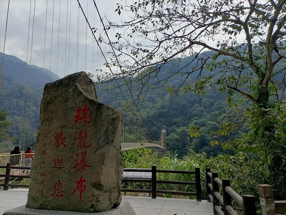 橫跨加走寮溪的「瑞龍吊橋」是通往瀑布的唯一道路,途中會先經過