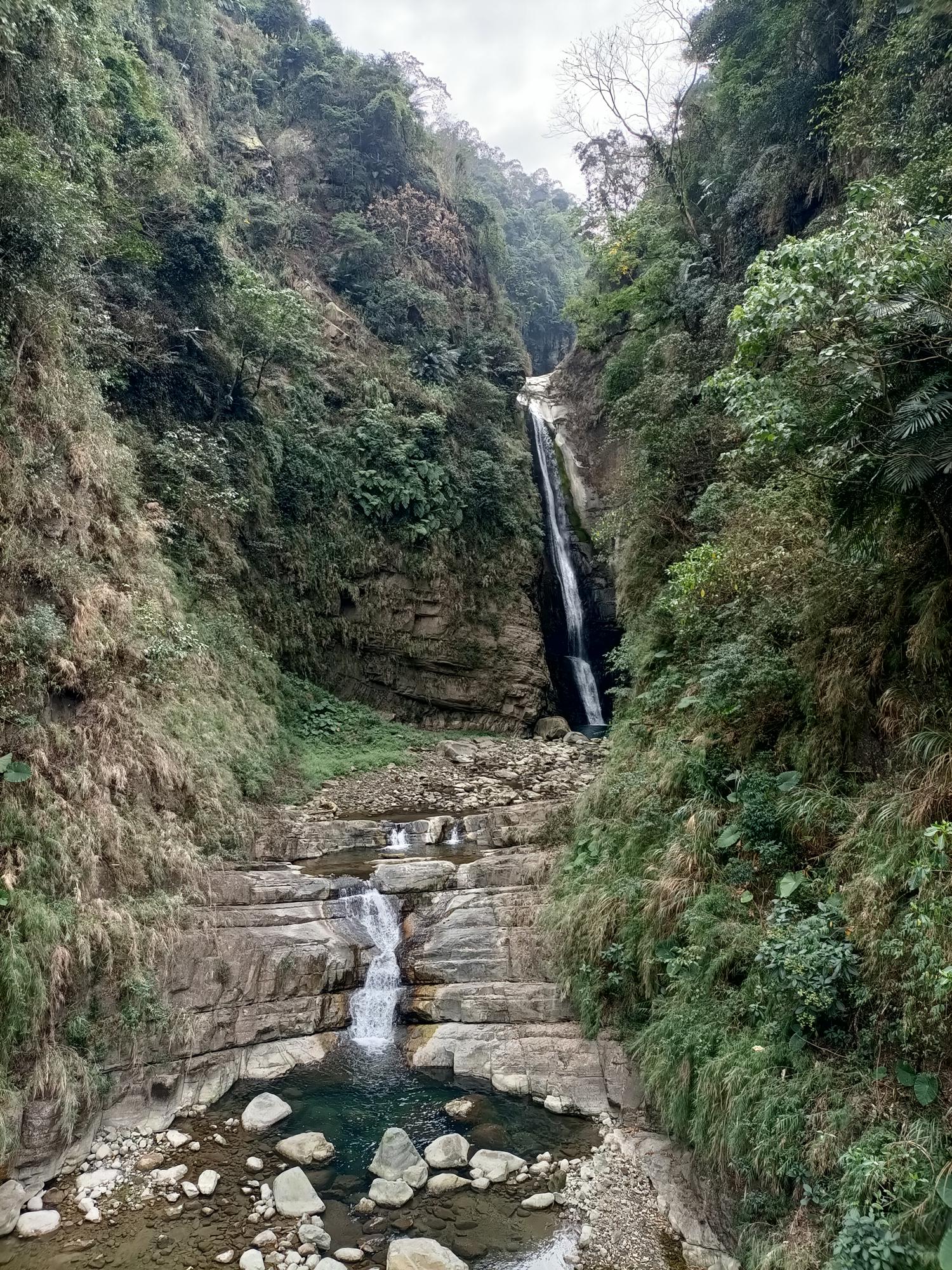 全覽加走寮溪峽谷之景,側面可遠望瑞龍瀑布整體之美,瀑布前方