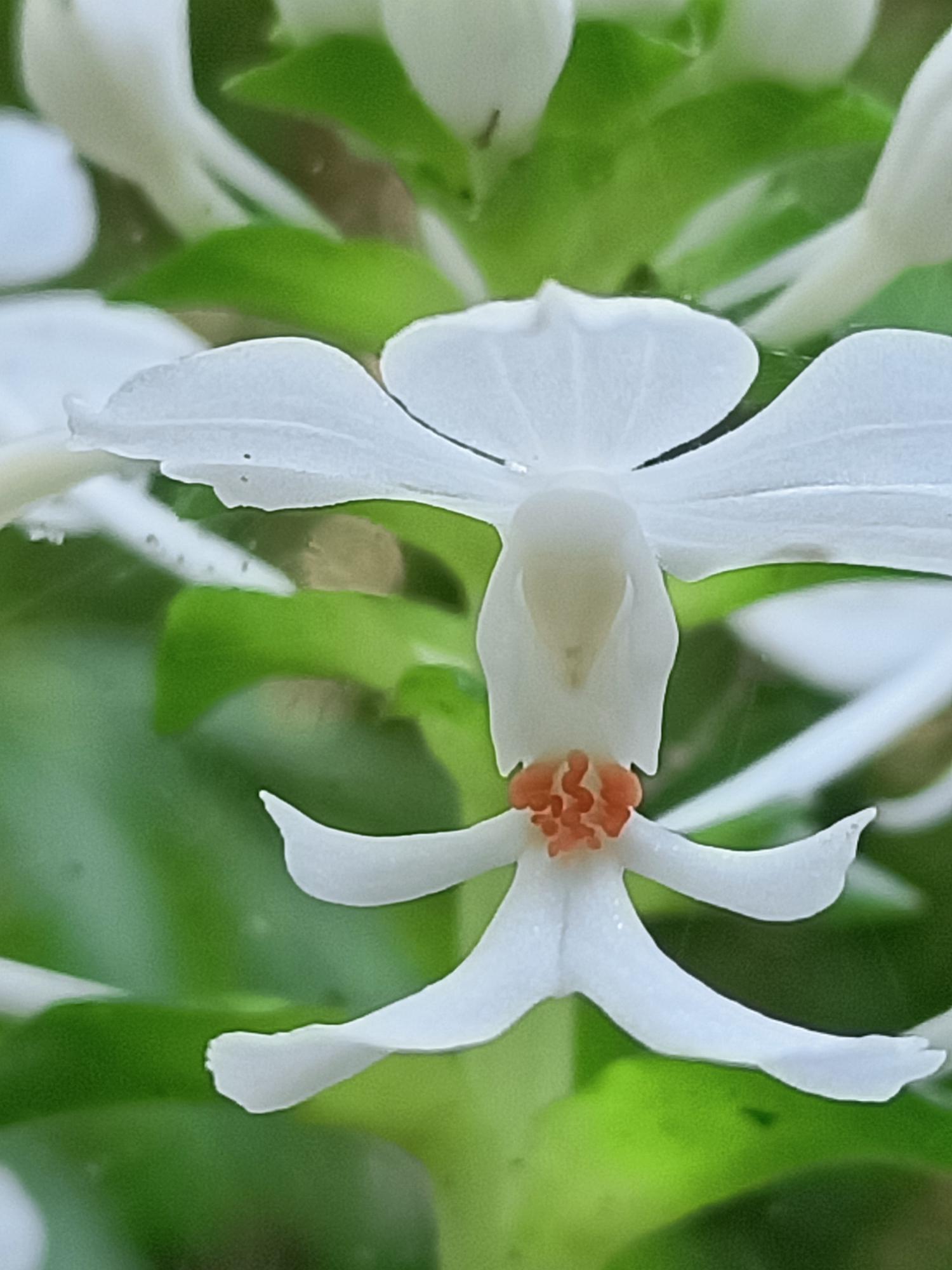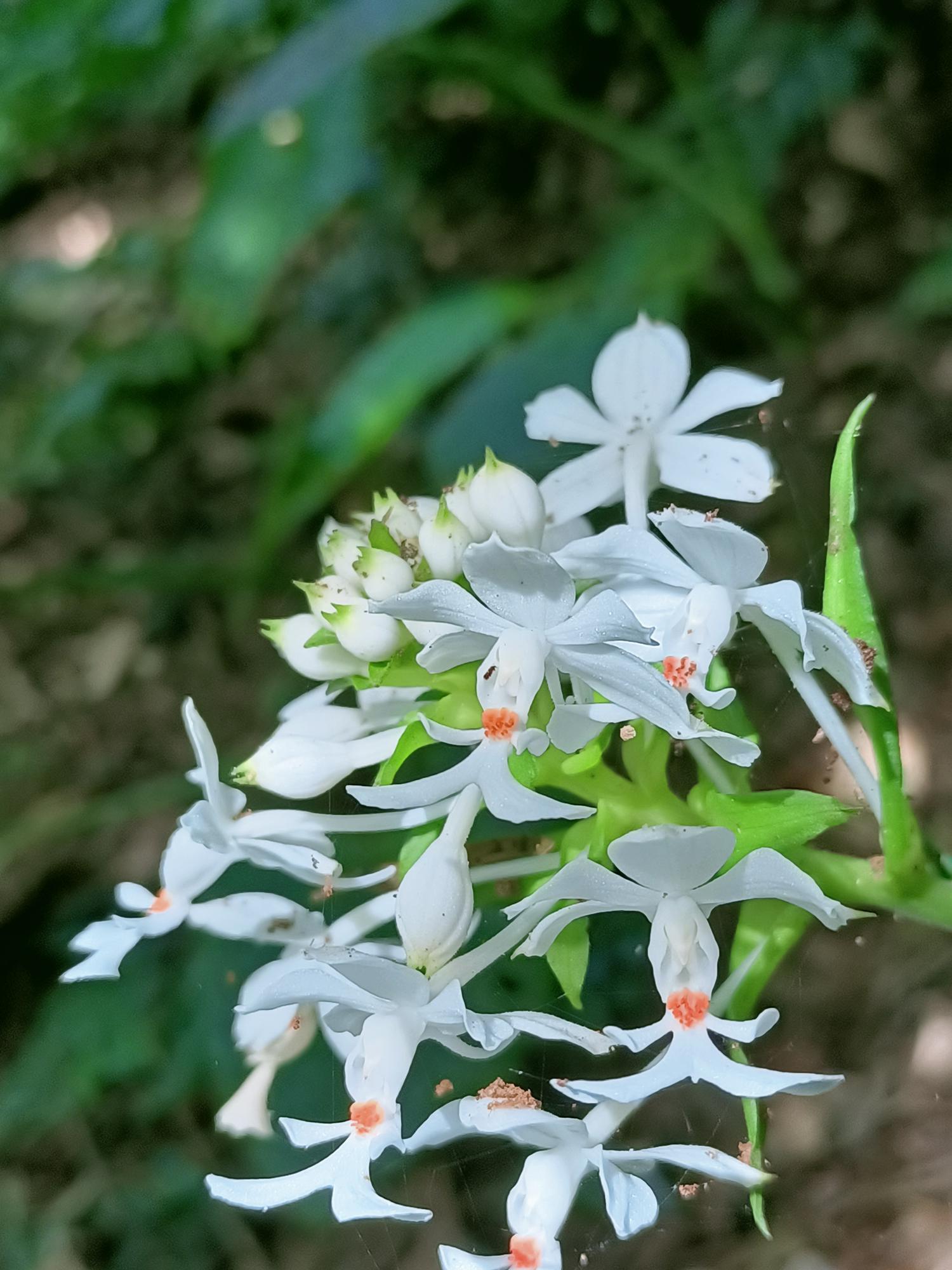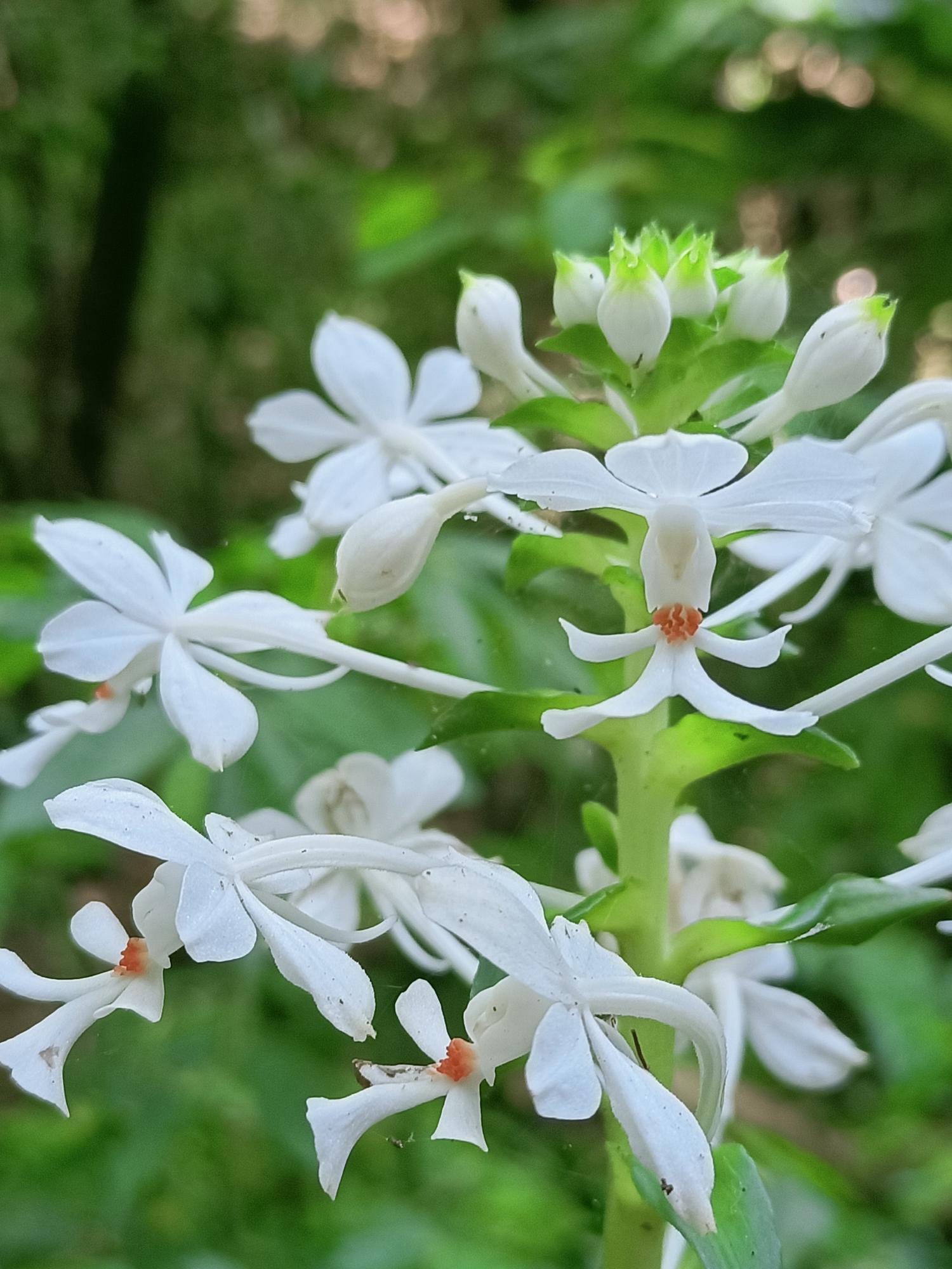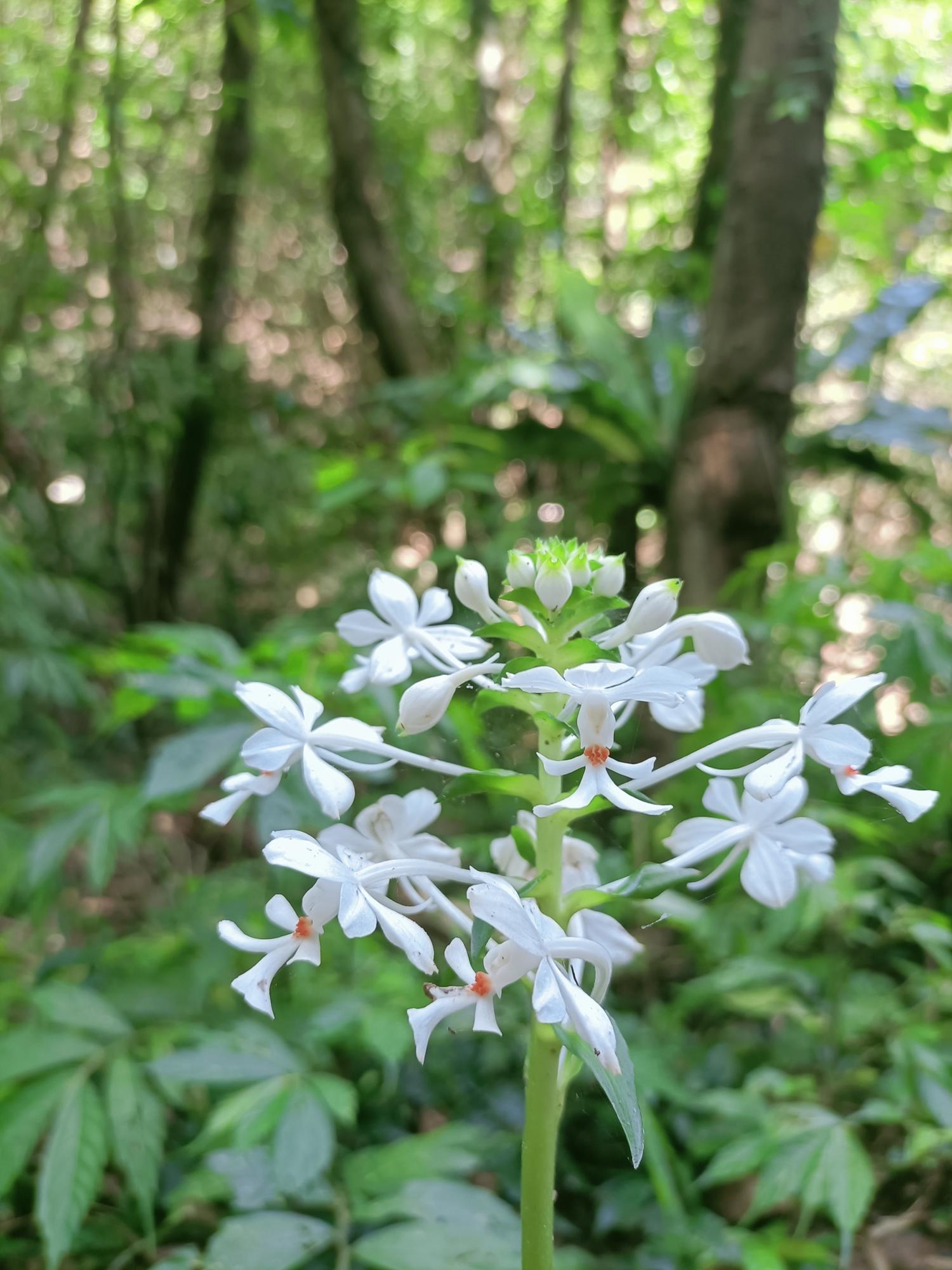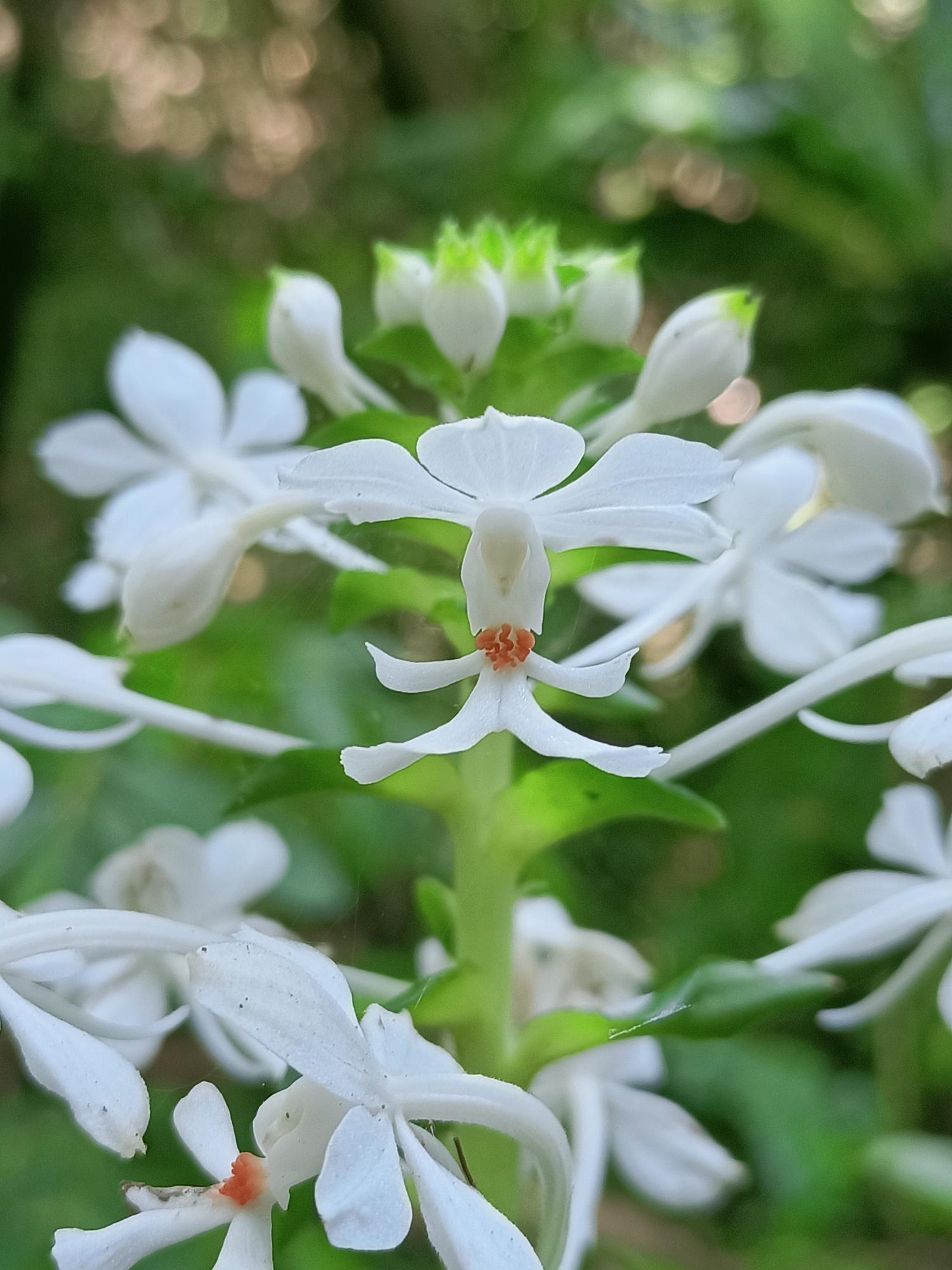 花莖40-60cm 高,花白色,花瓣及萼片開展,唇瓣3裂,