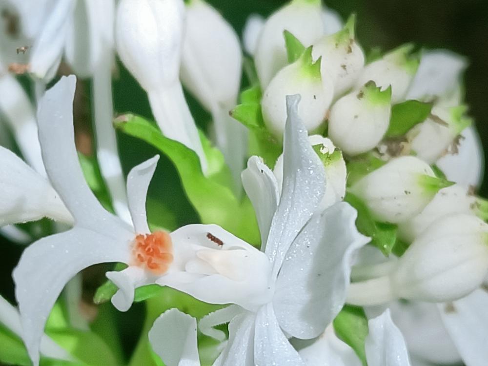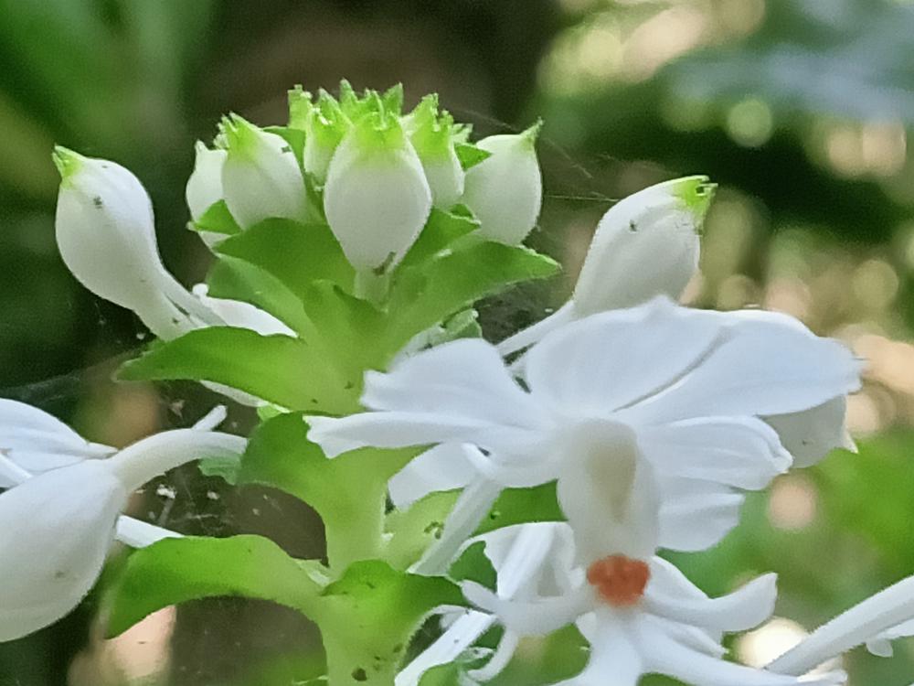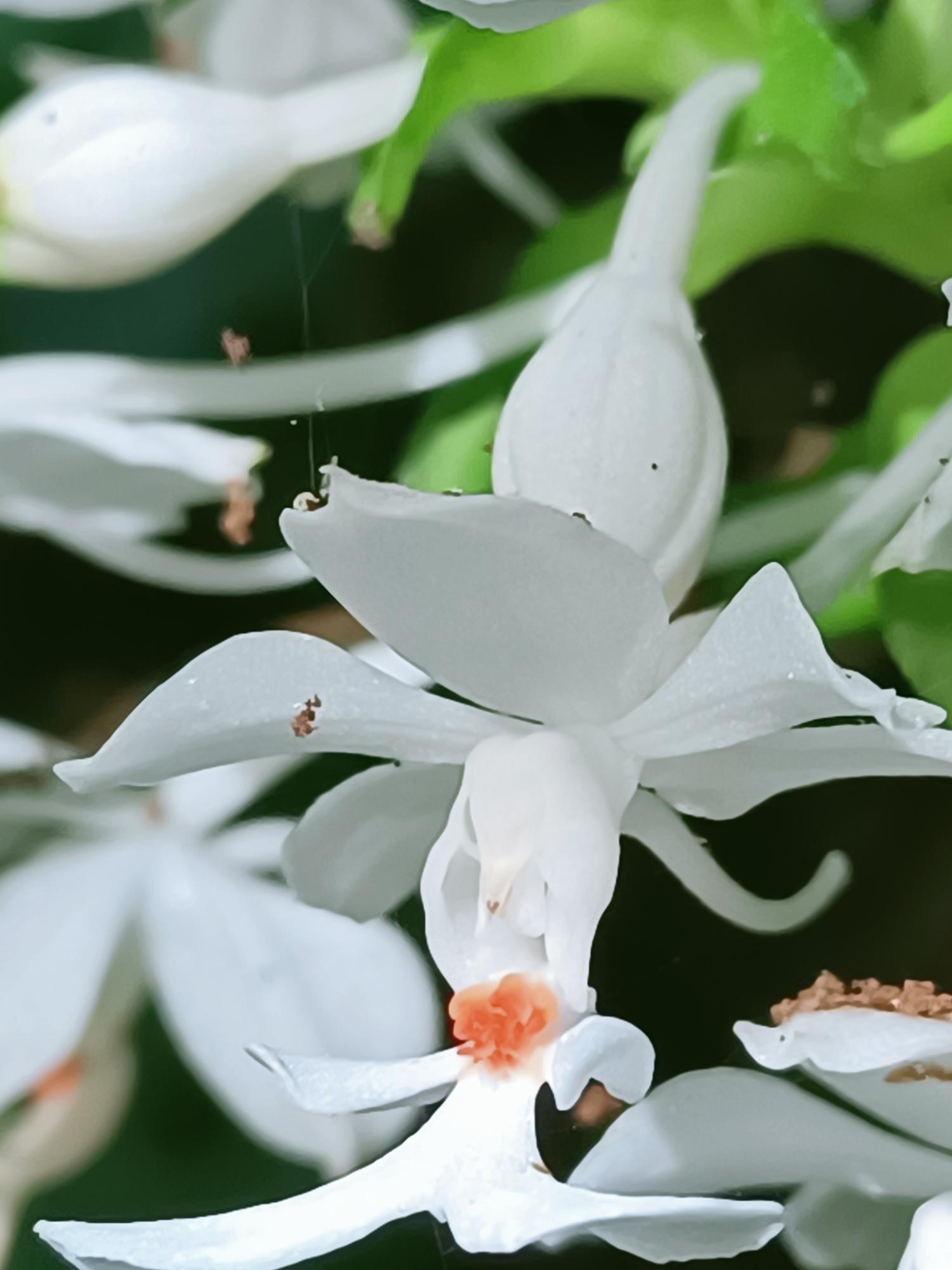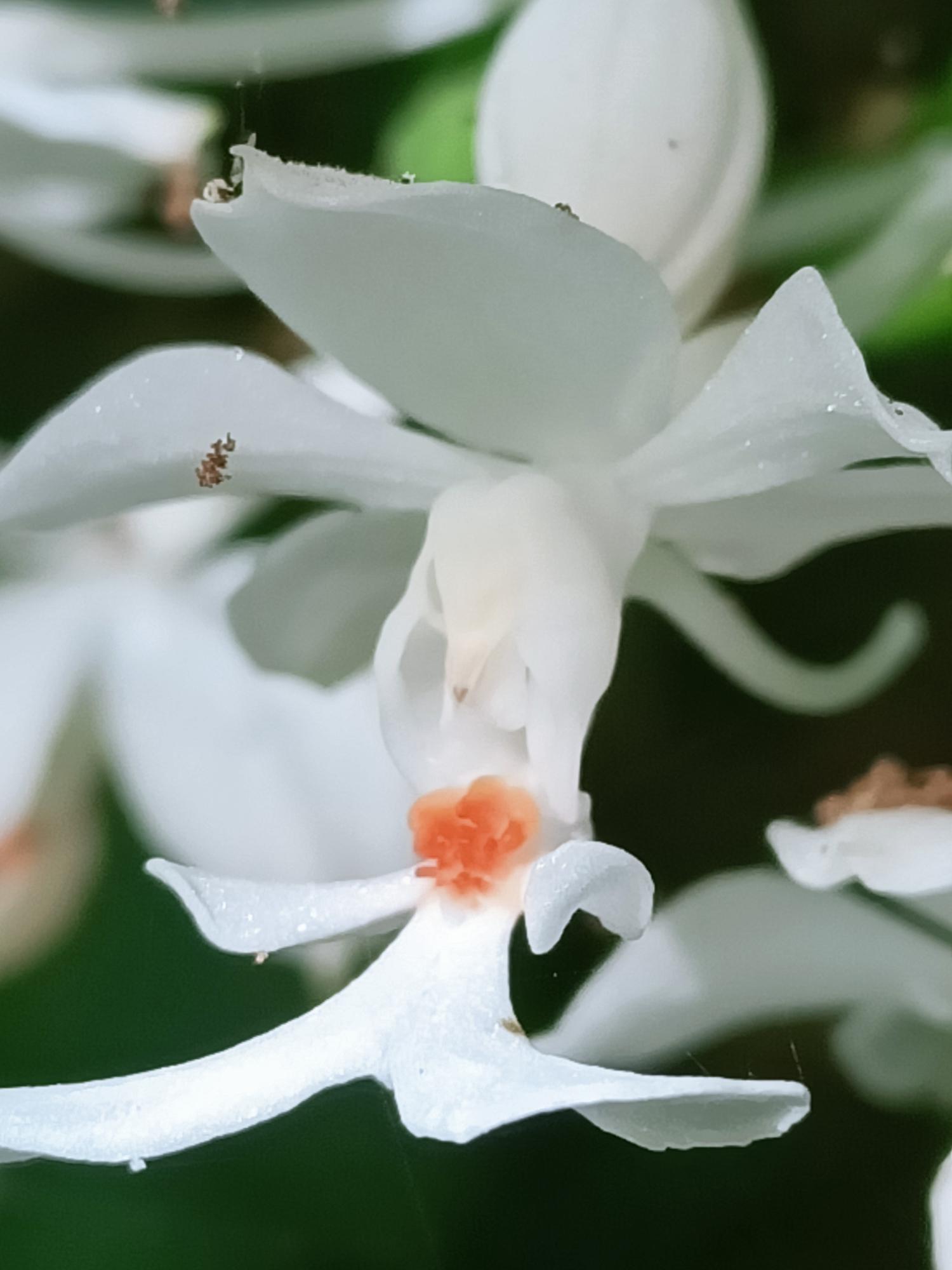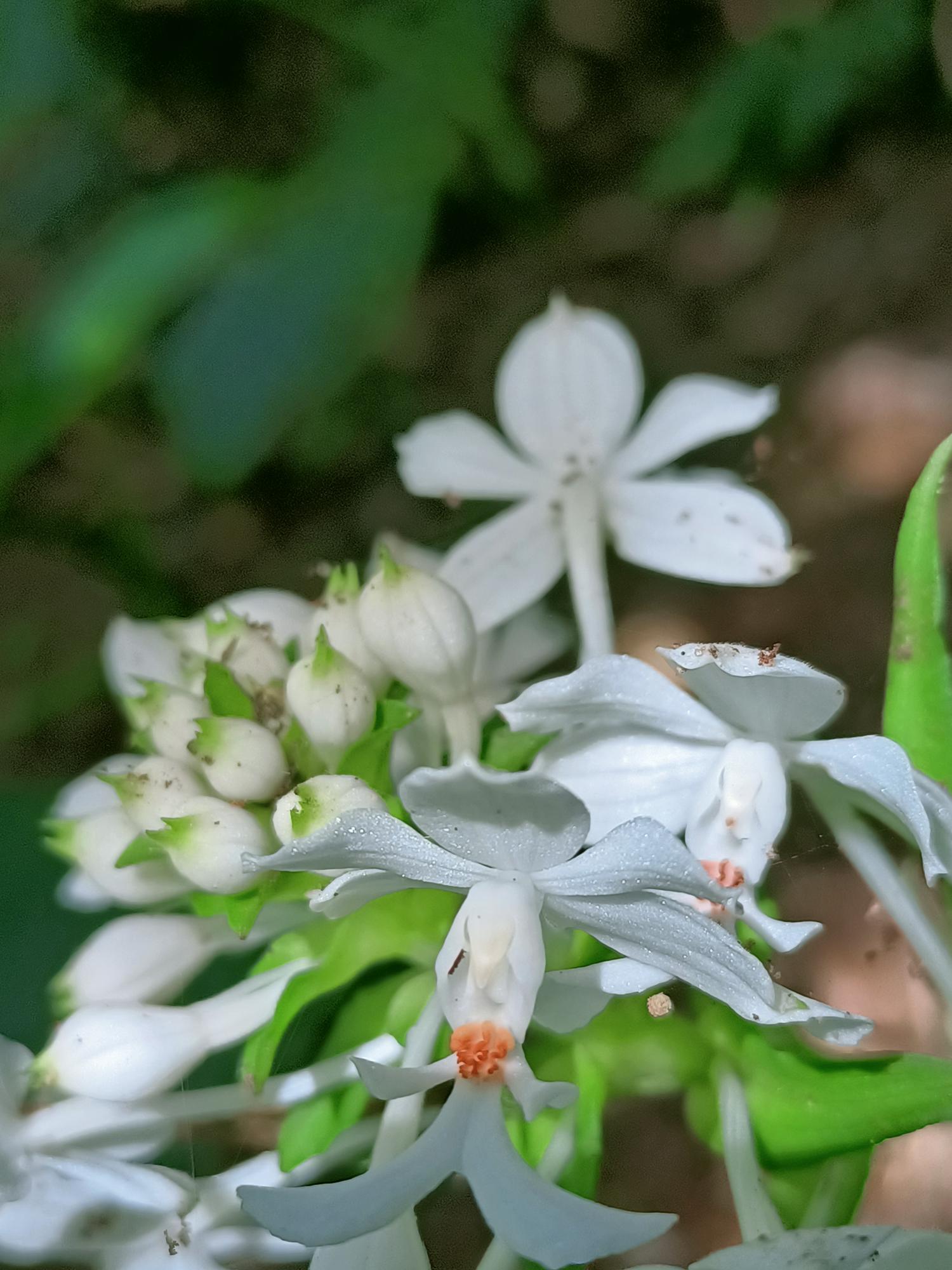 花莖40-60cm 高,花白色,花瓣及萼片開展,唇瓣3裂,
