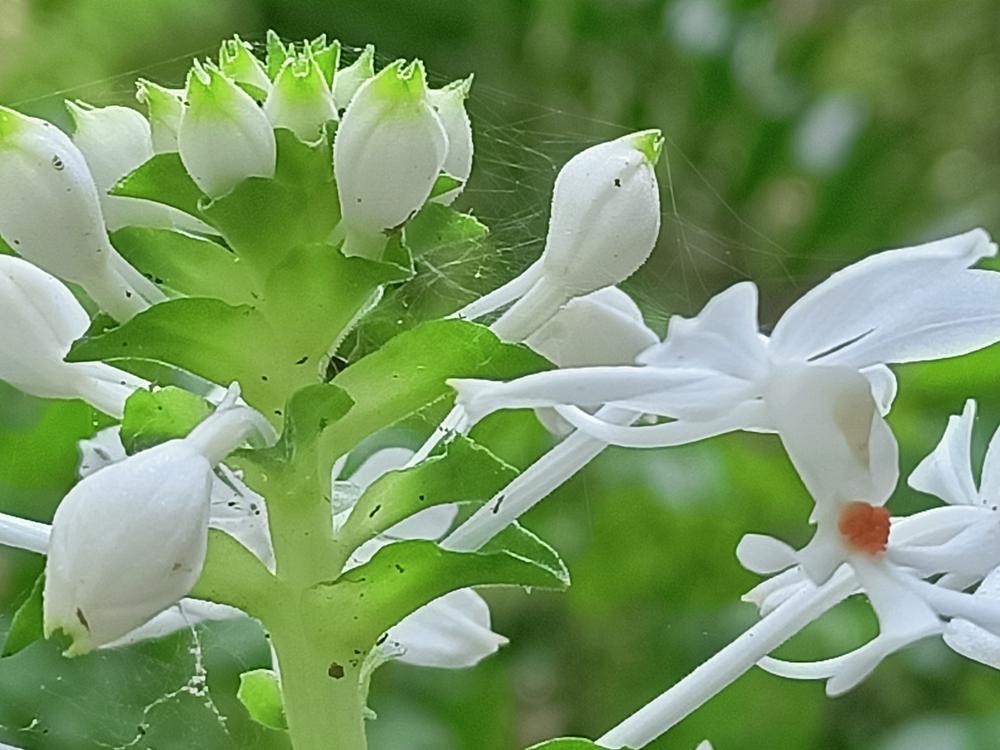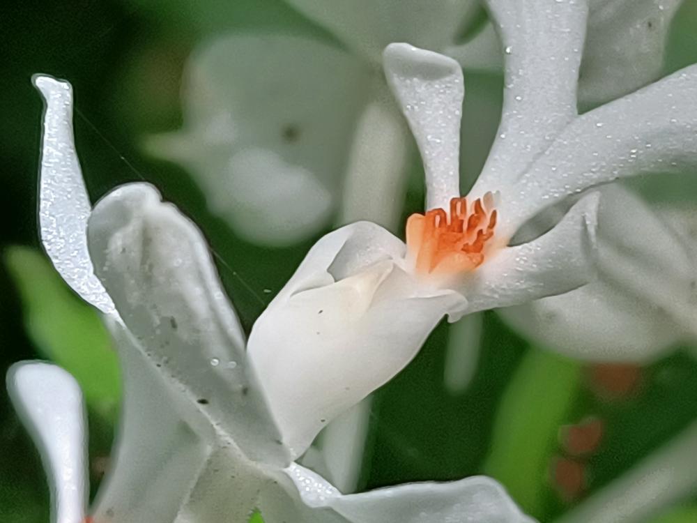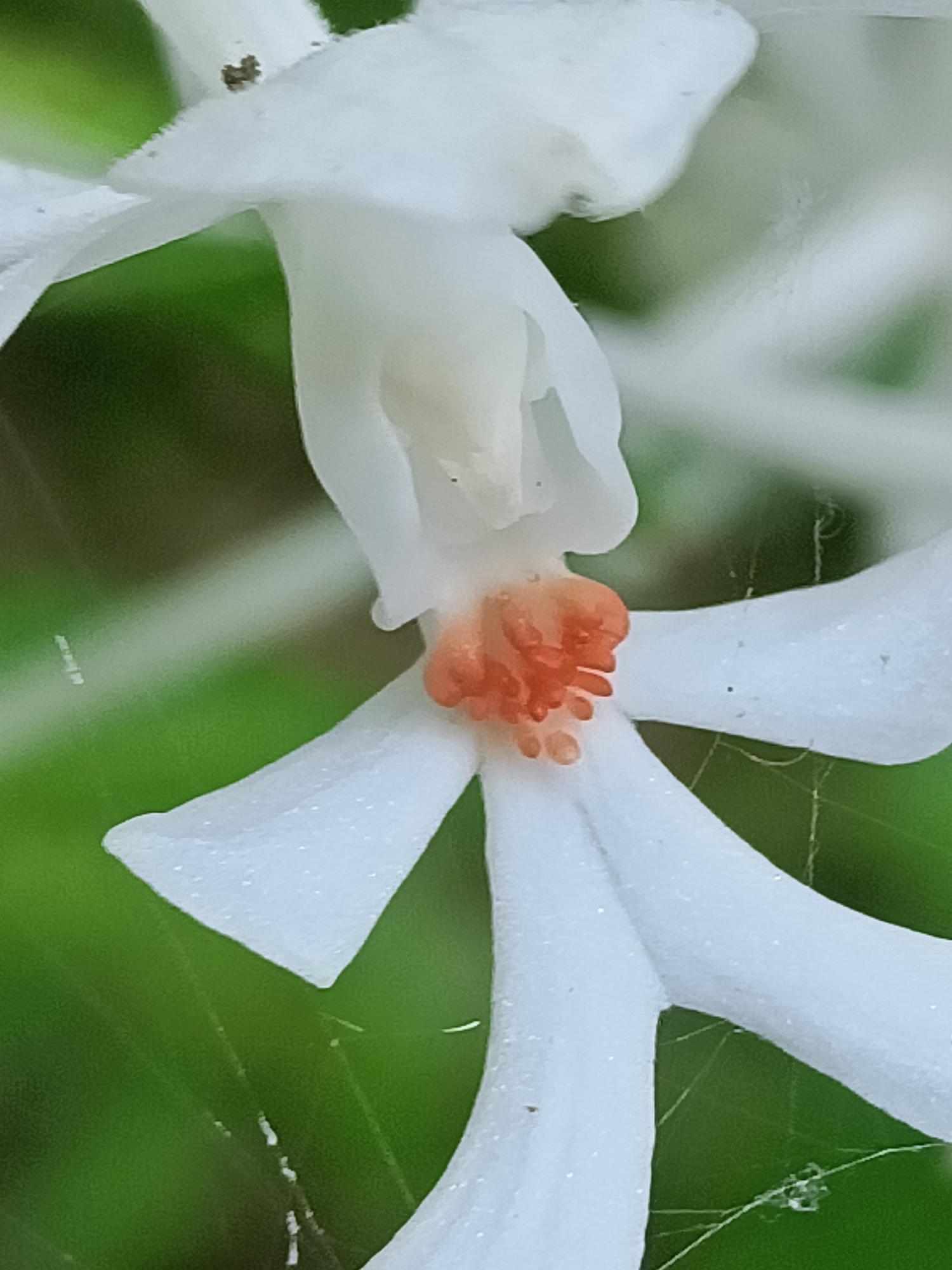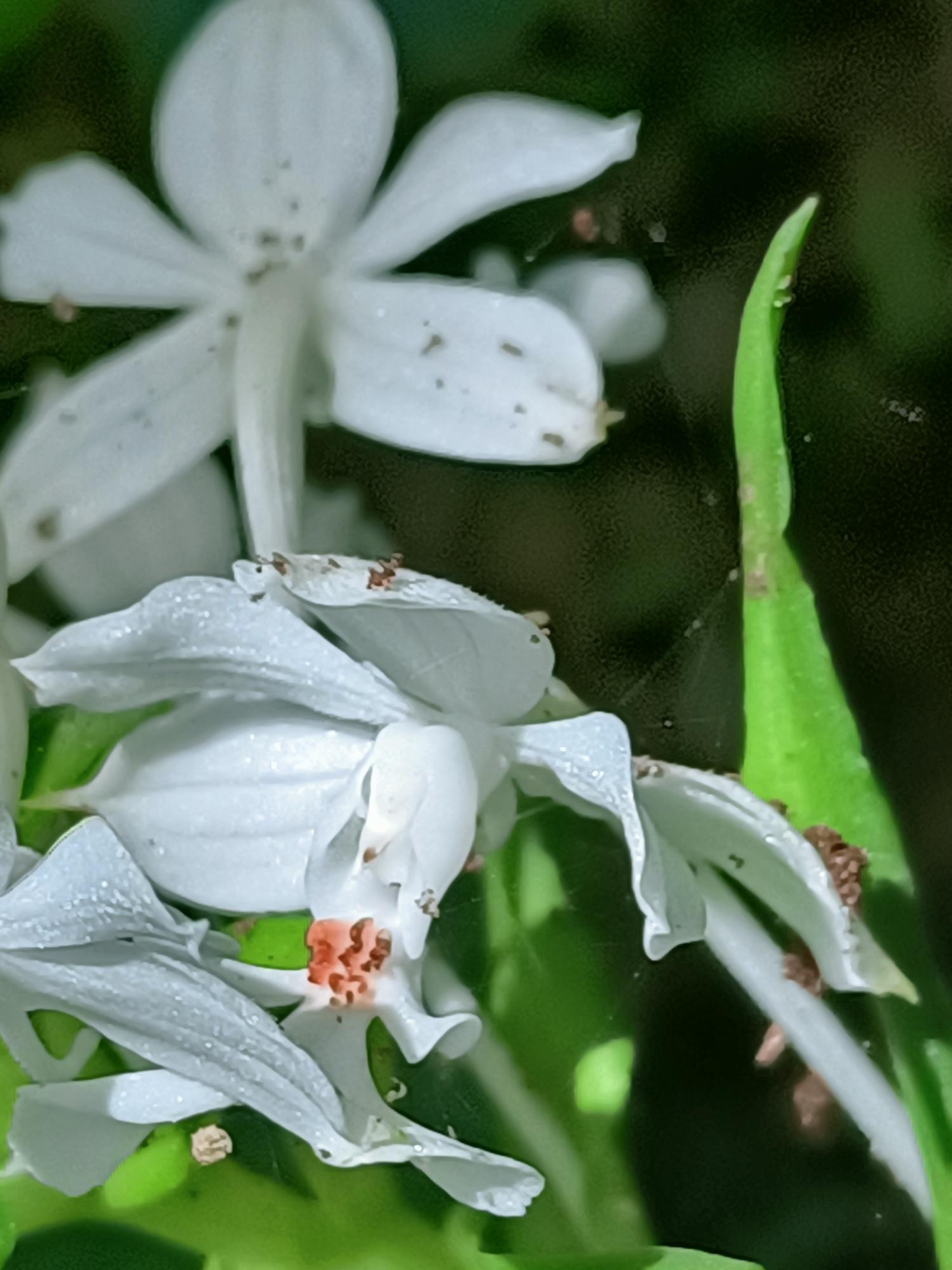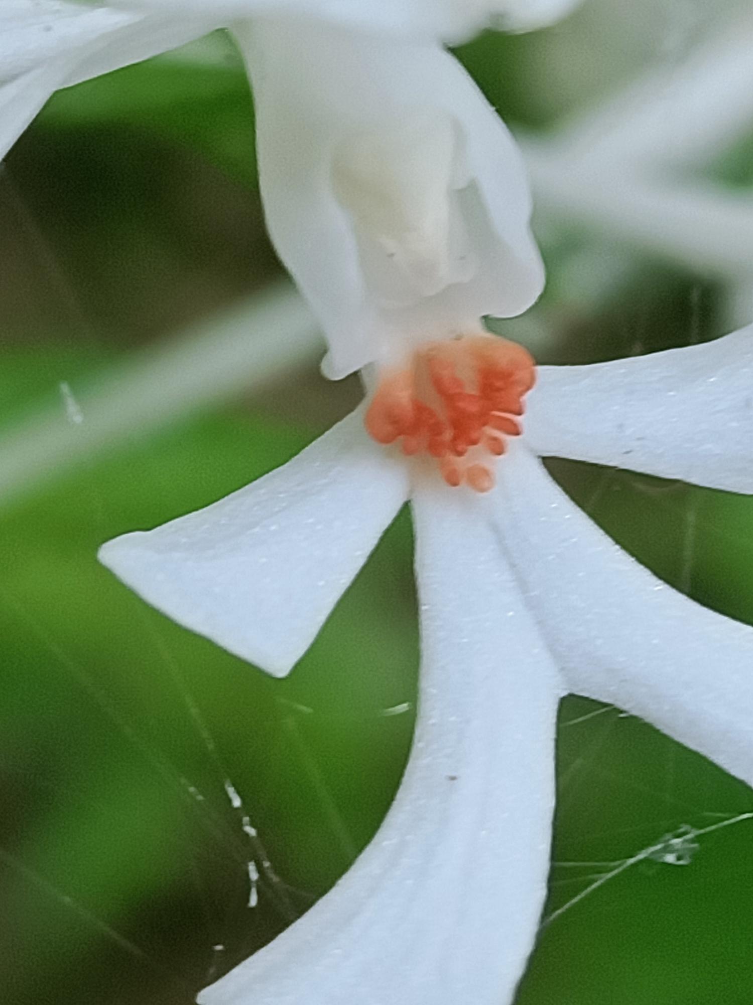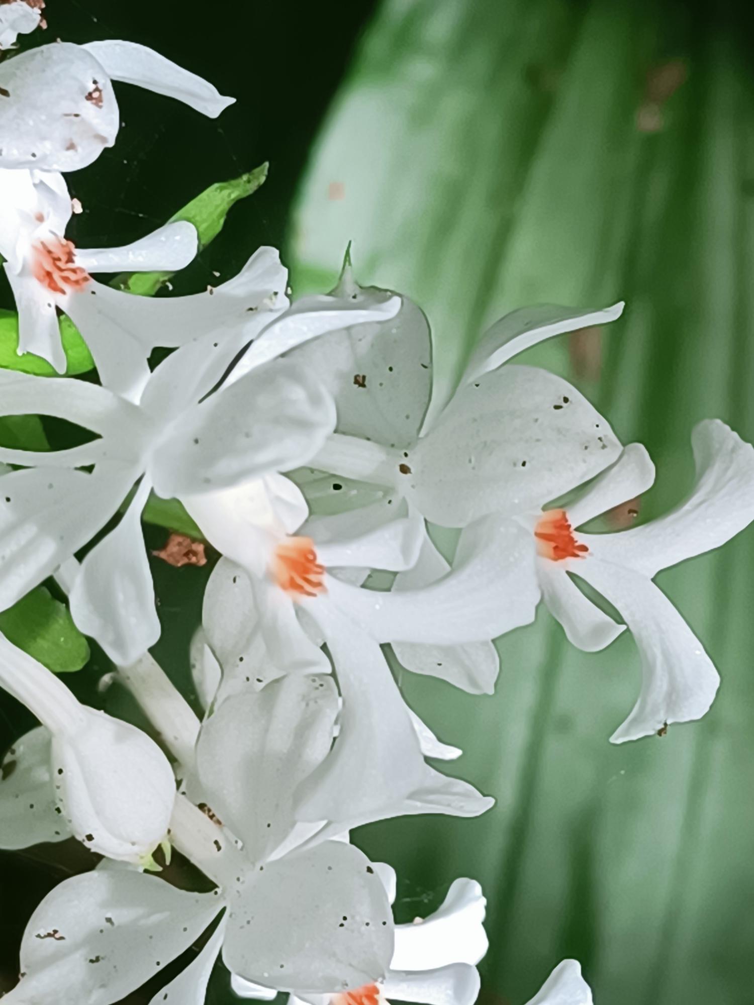 花莖40-60cm 高,花白色,花瓣及萼片開展,唇瓣3裂,