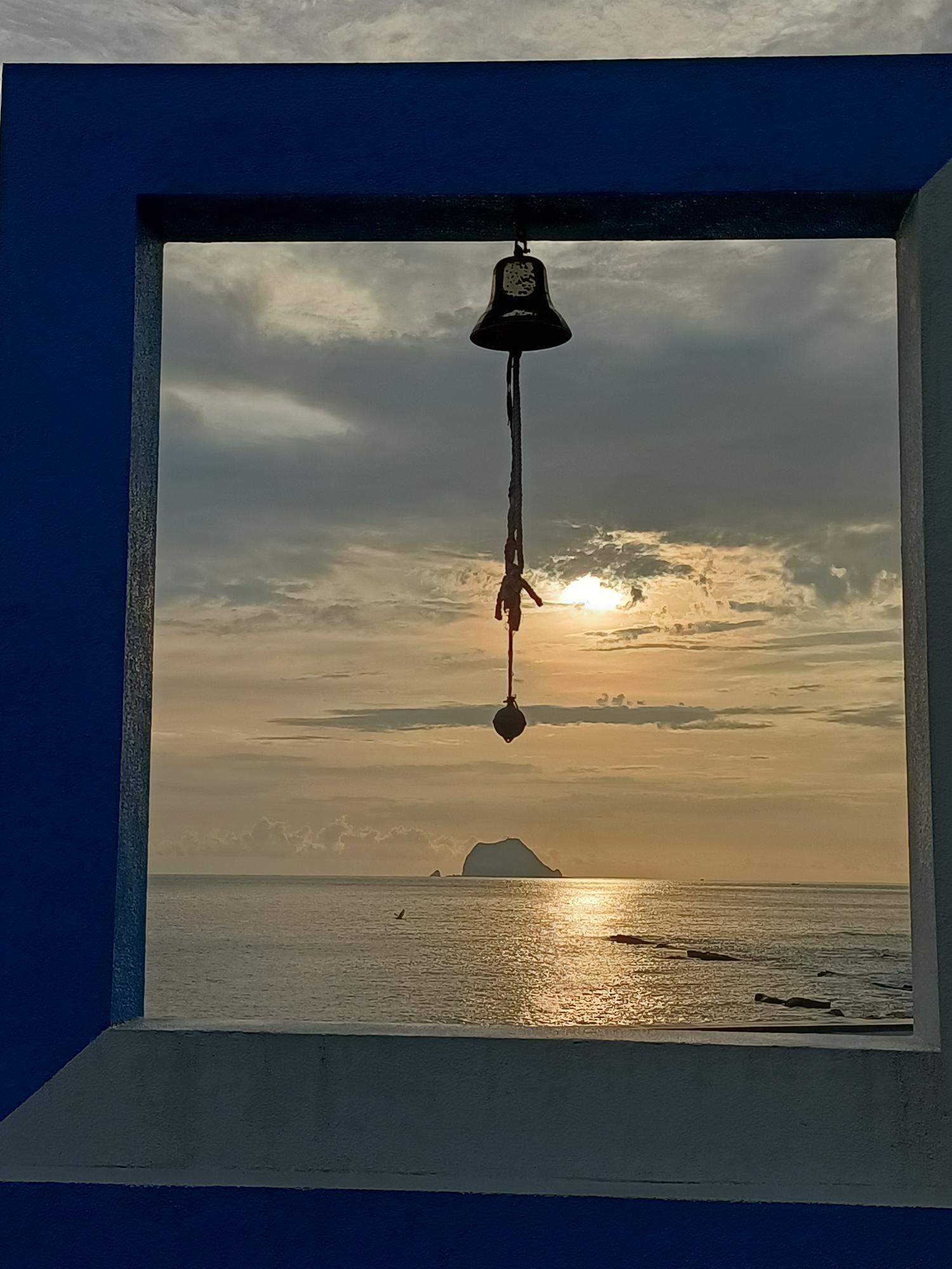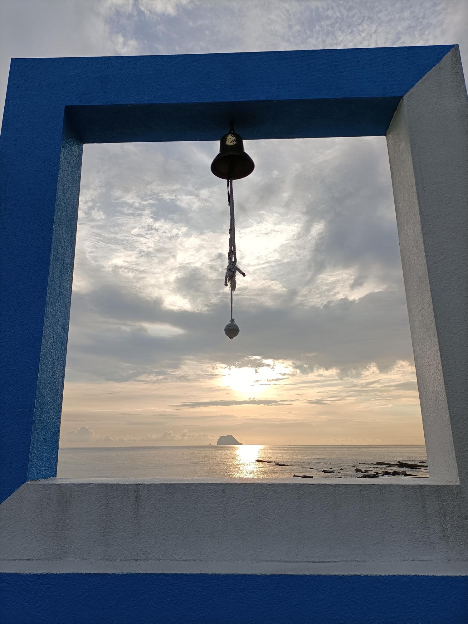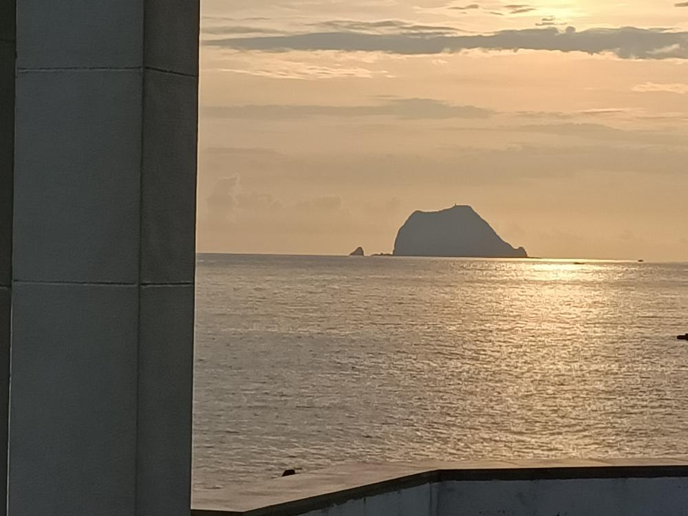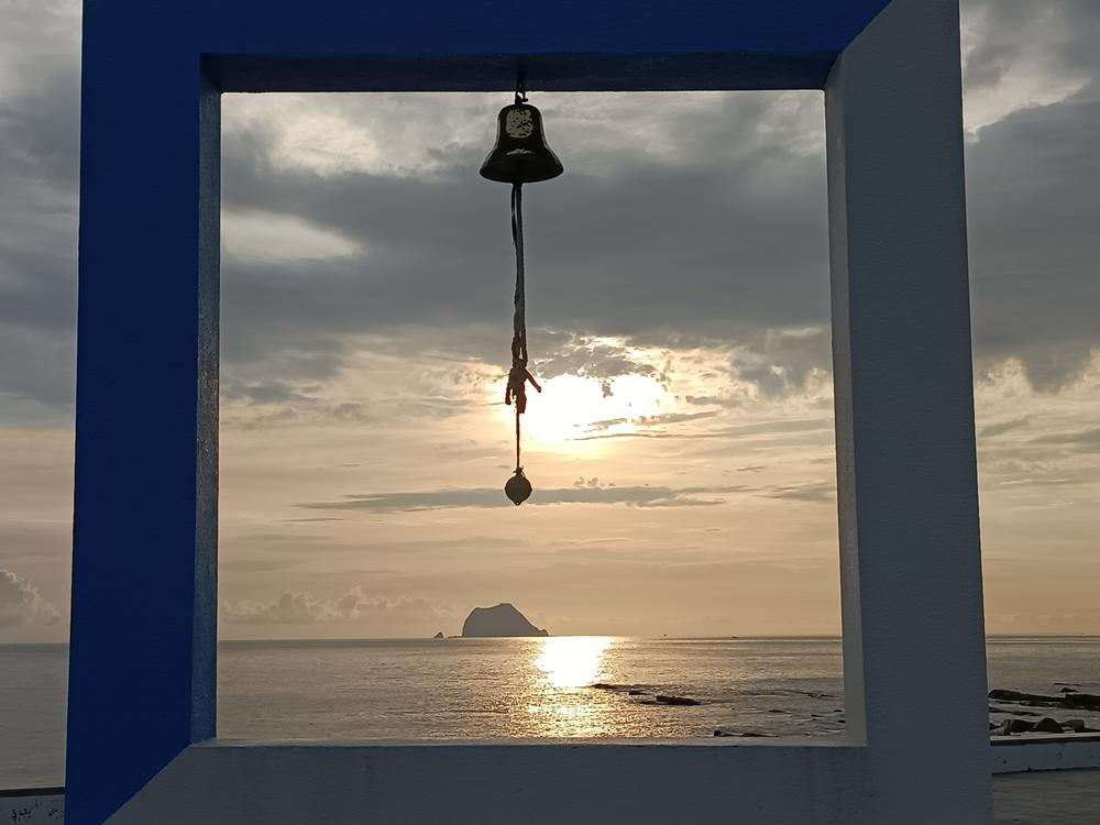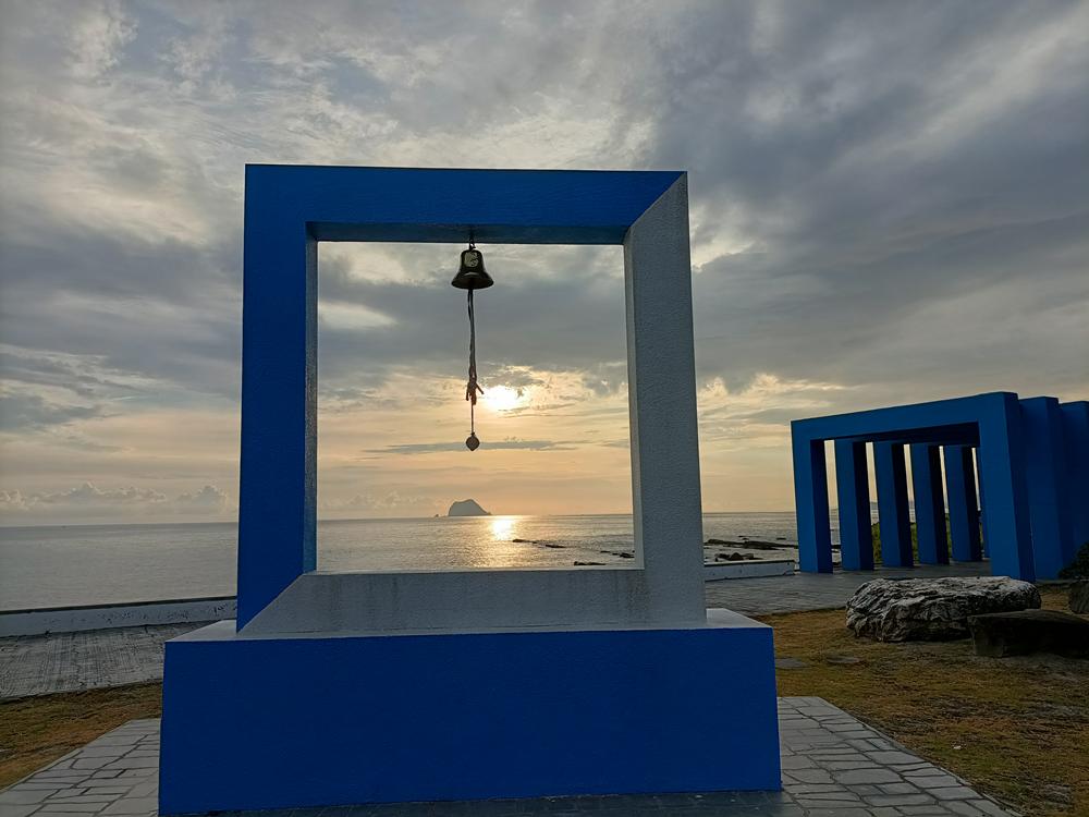 迫不急待站在「鍾愛一生」意象框與基隆嶼一同入鏡。