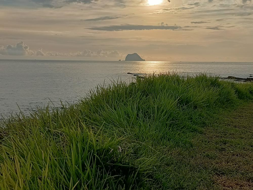 還有親子開心在廣大的大草坪與基隆嶼同框合影,