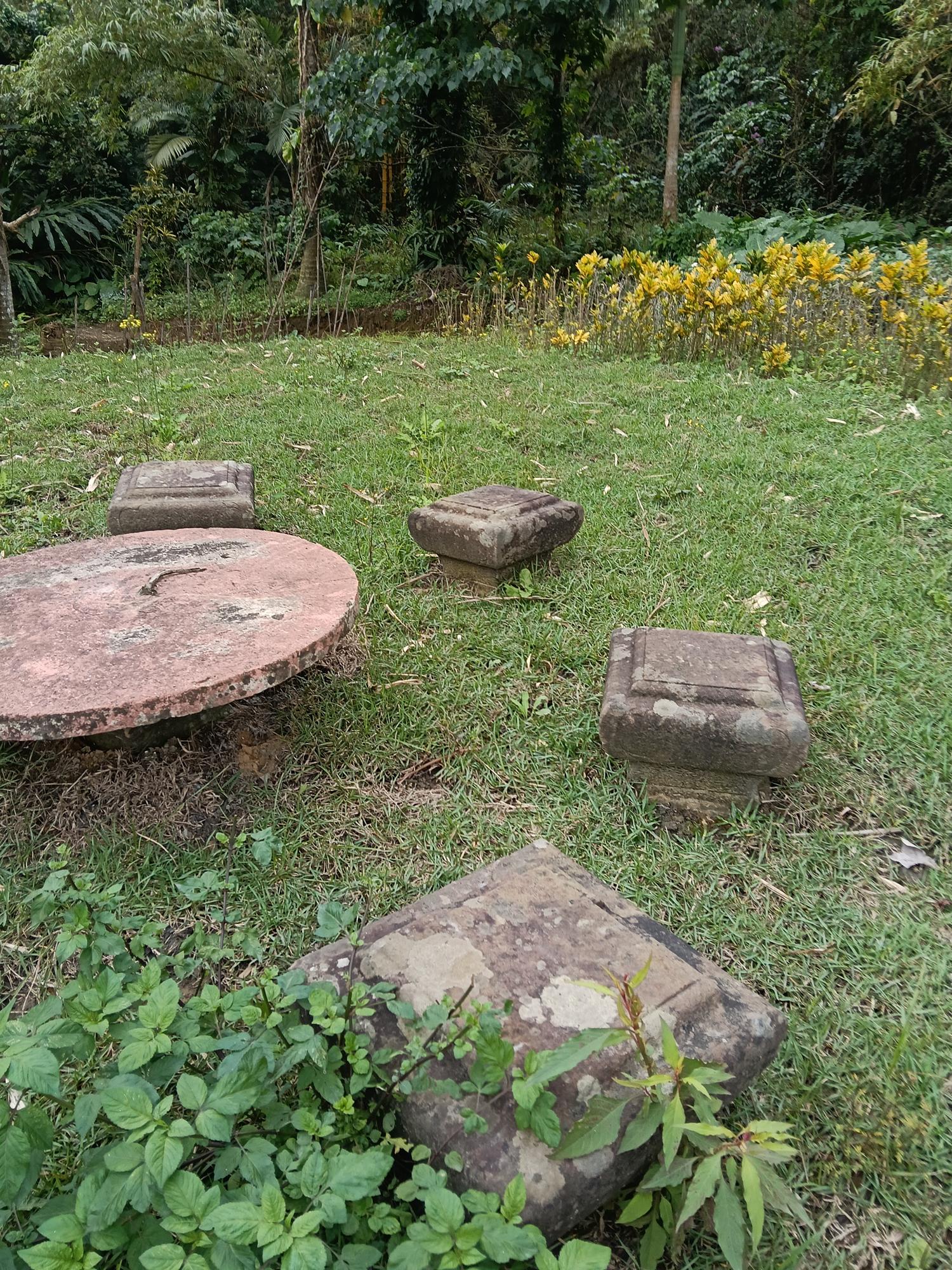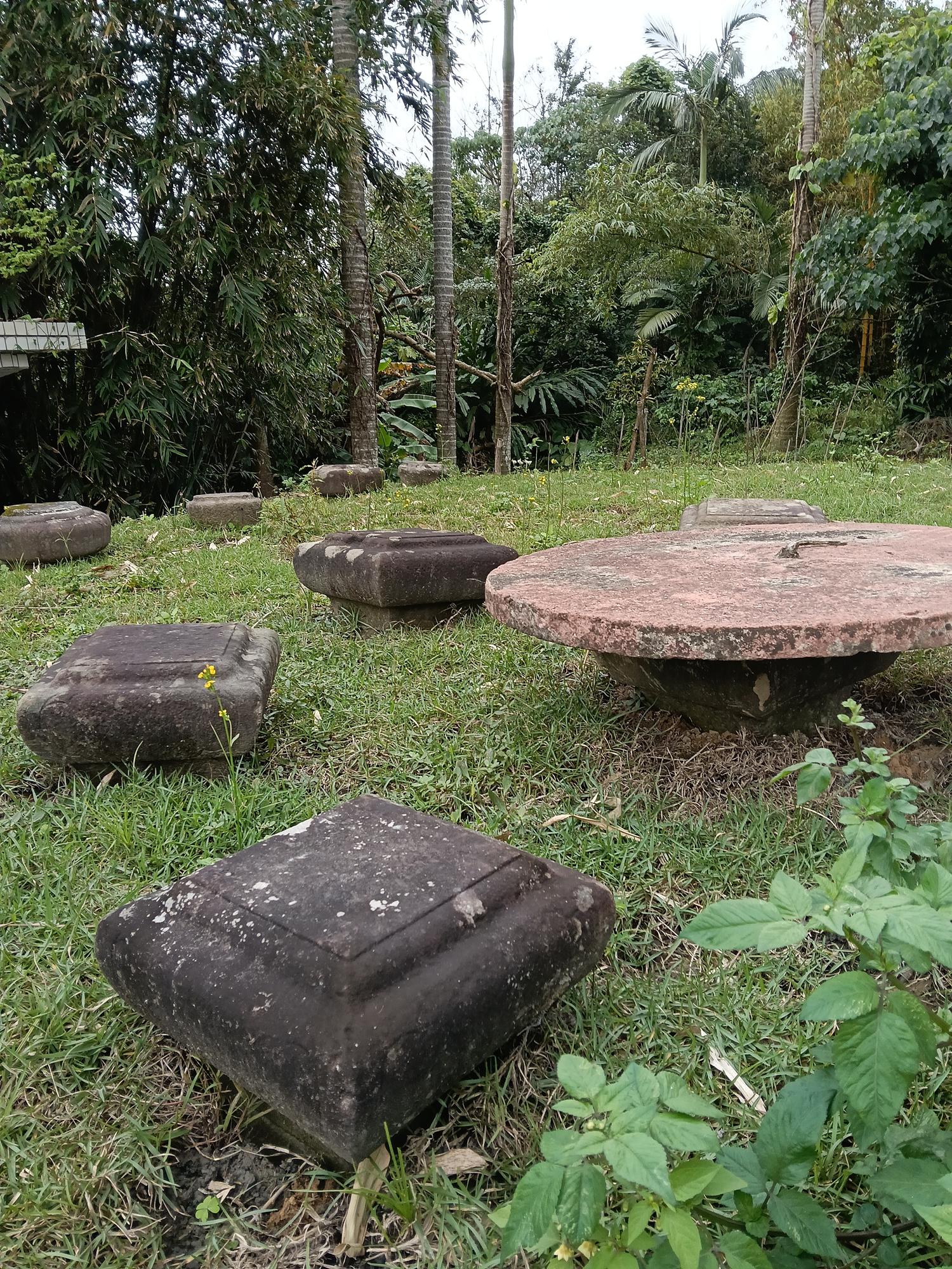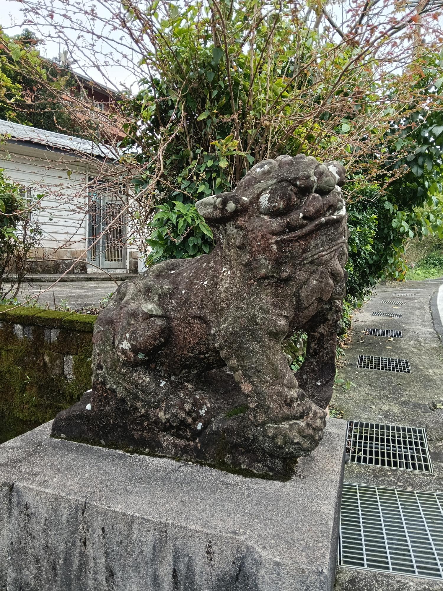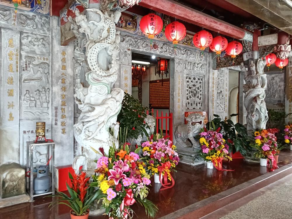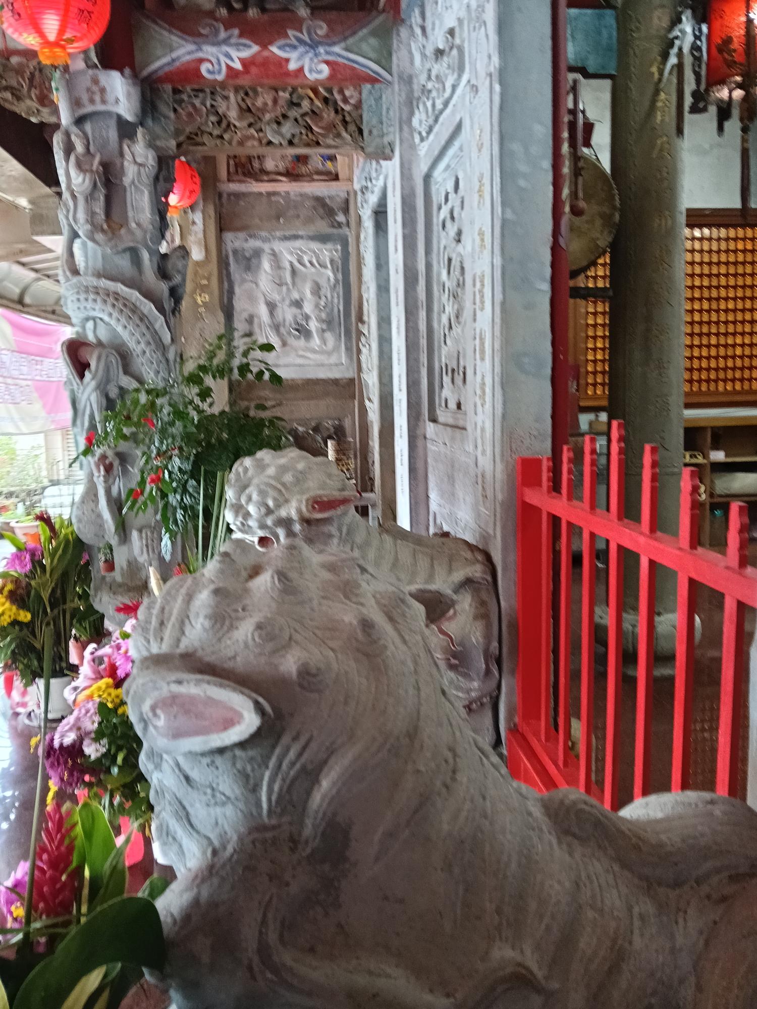 正殿正面石造牆與石龍柱等。