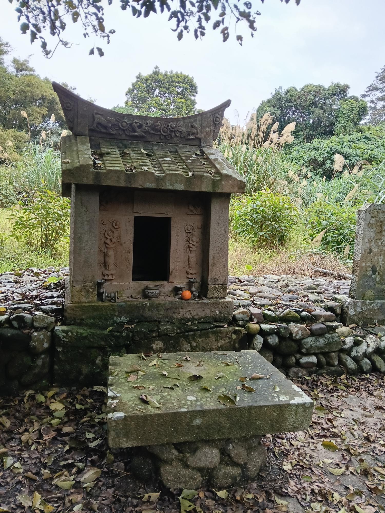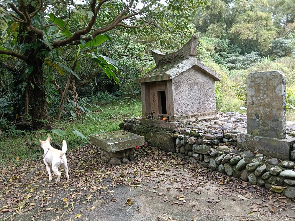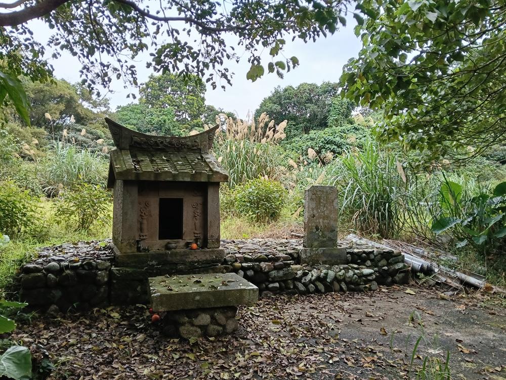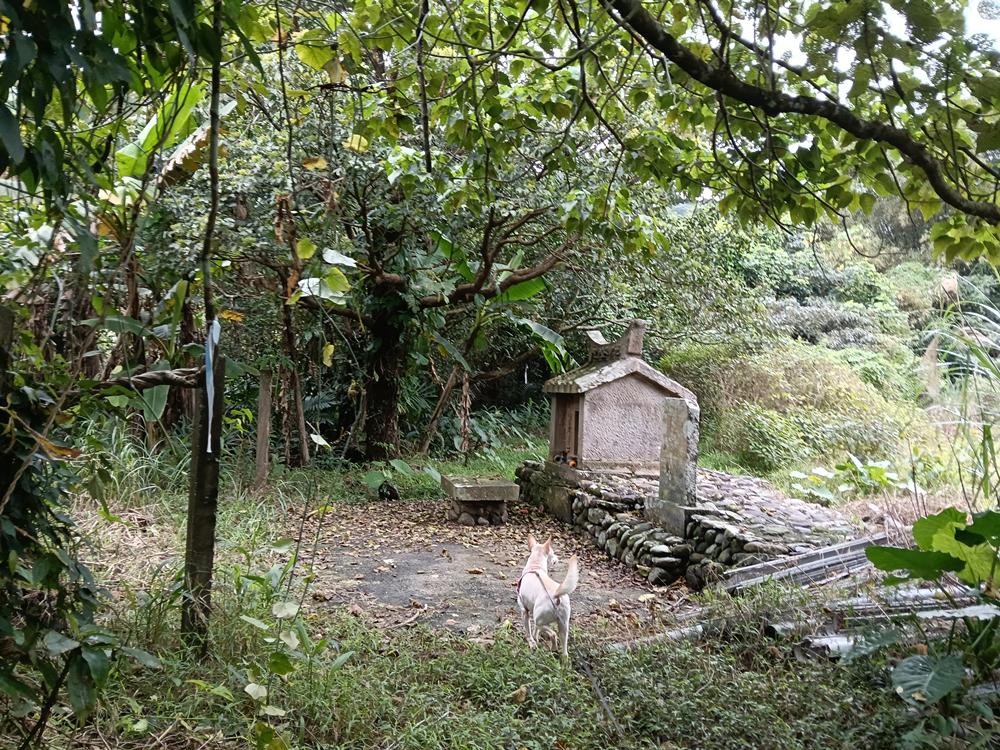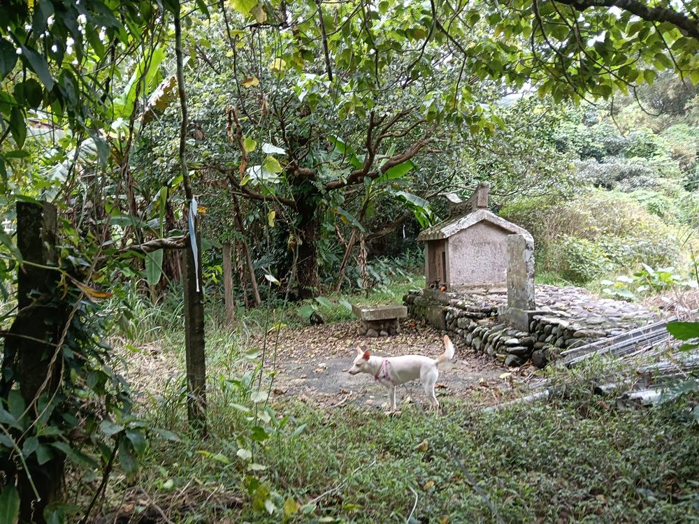 廟左後被遺忘的新社渡口遺址,荒煙中有座古老的福德祠。