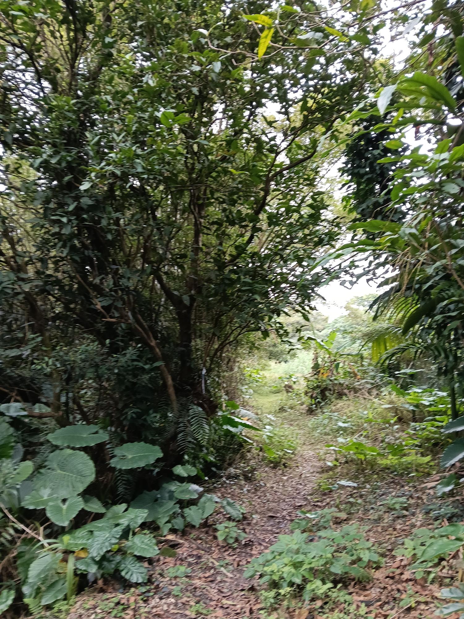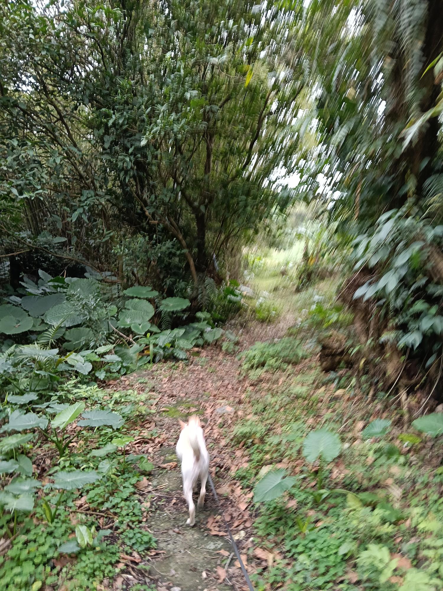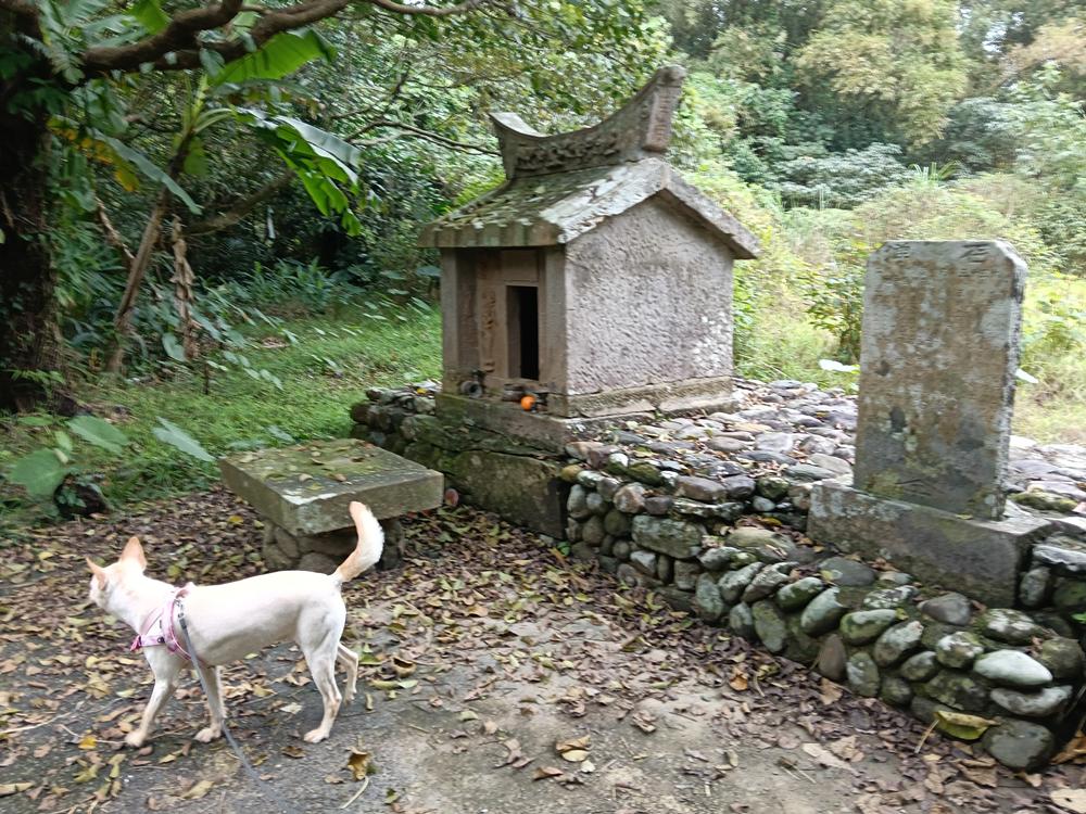 廟左後被遺忘的新社渡口遺址,荒煙中有座古老的福德祠。