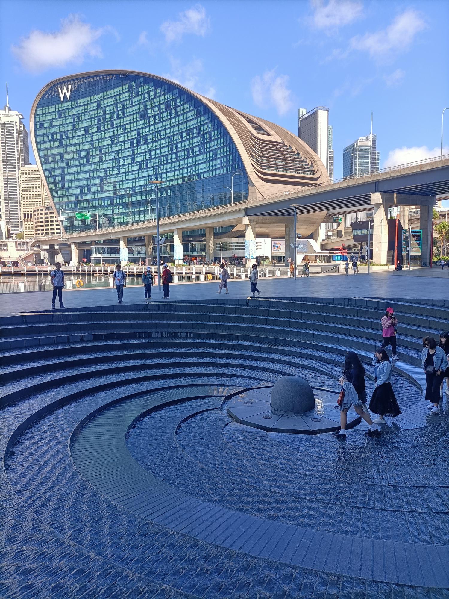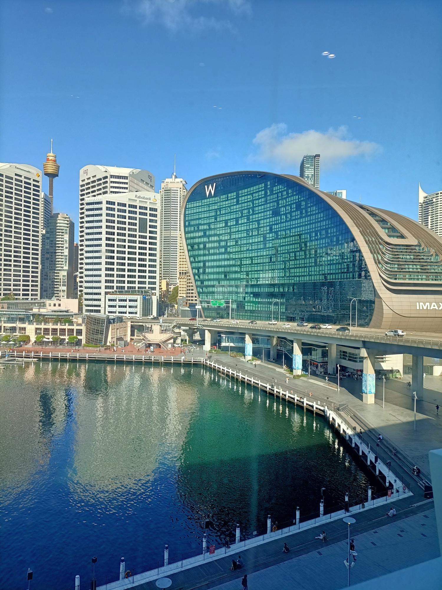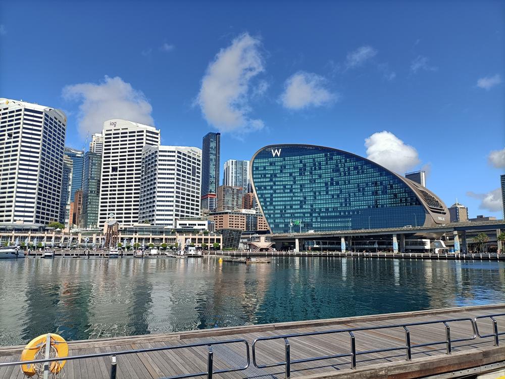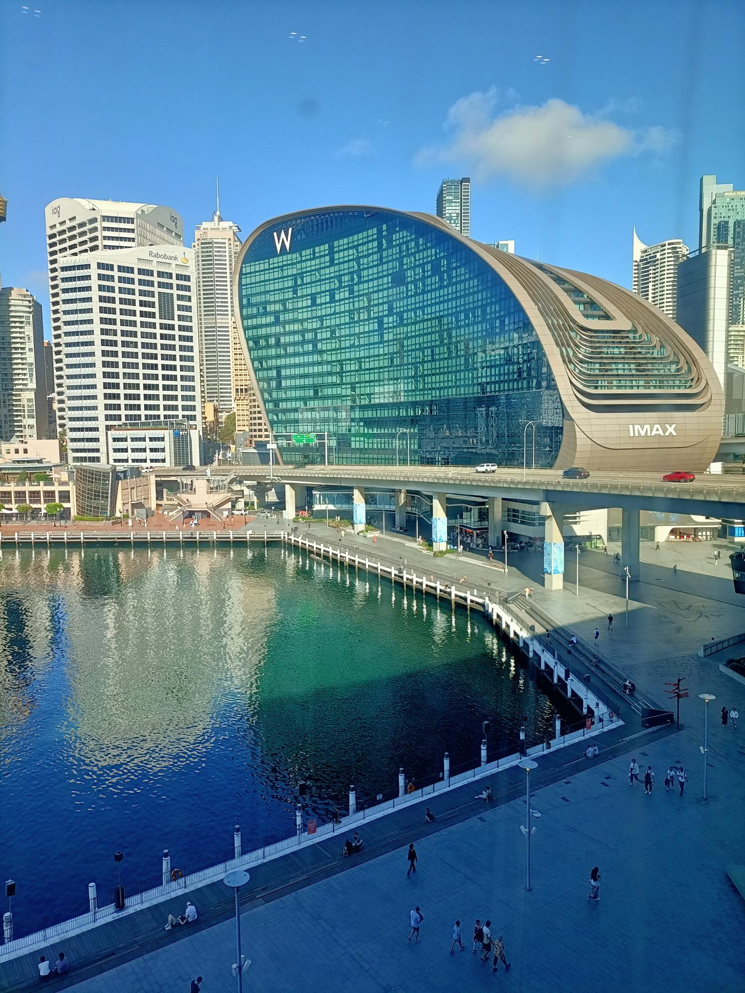雪梨國際會議中心面向達令港科克爾灣,閃閃發亮的玻璃帷幕牆