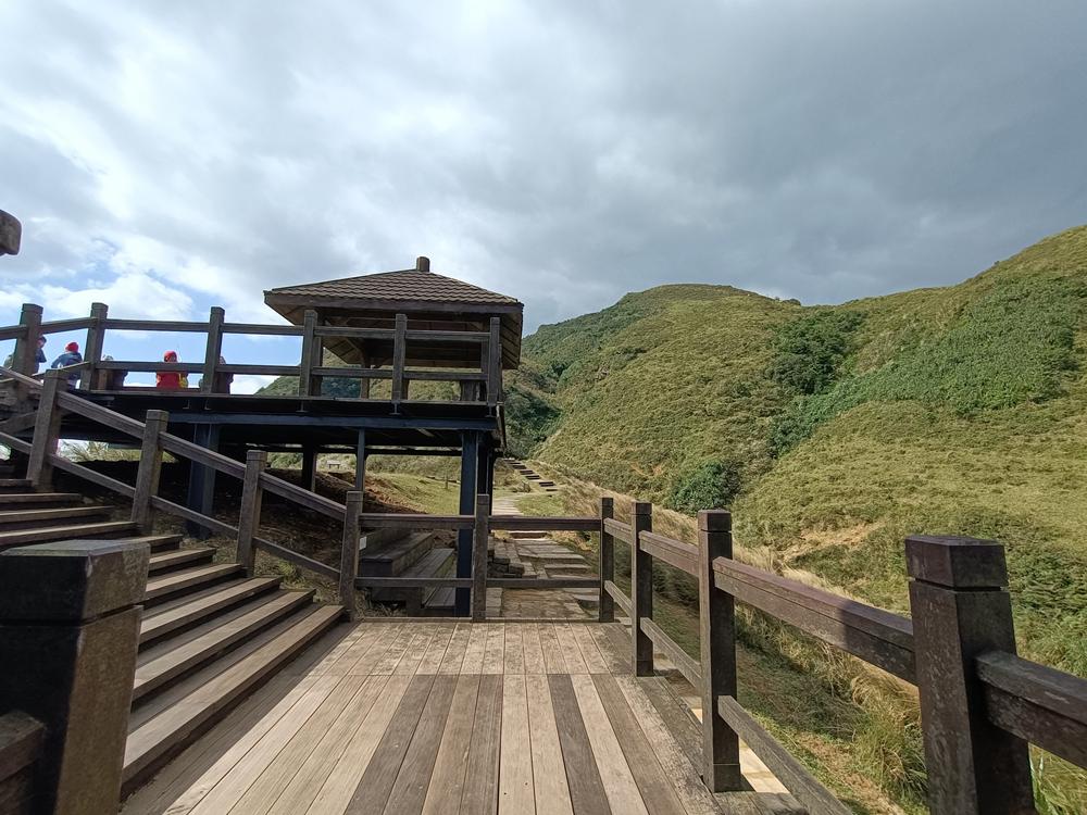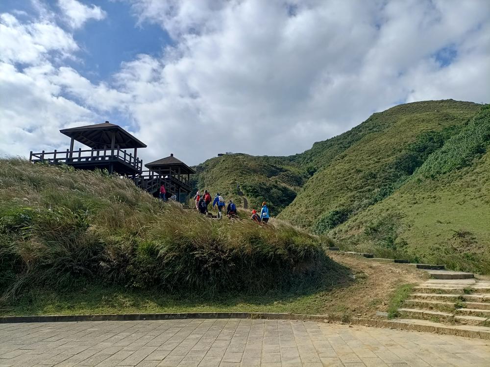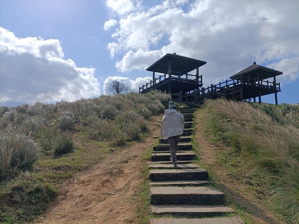 步道四周的視野也跟著開闊起來,抬頭看便能看到草嶺古道埡口的觀景台。